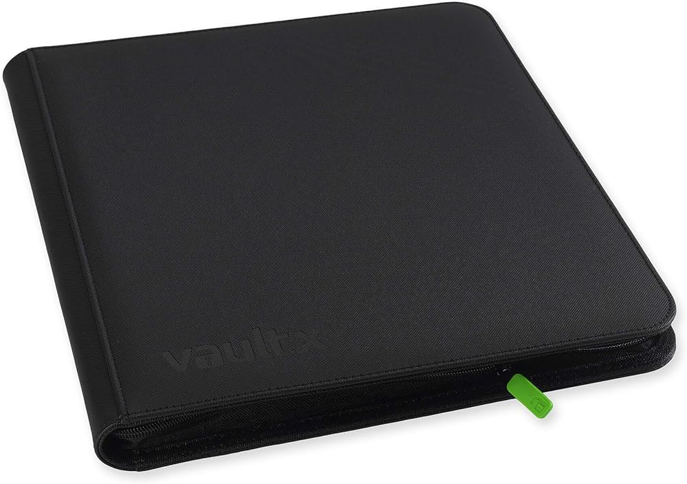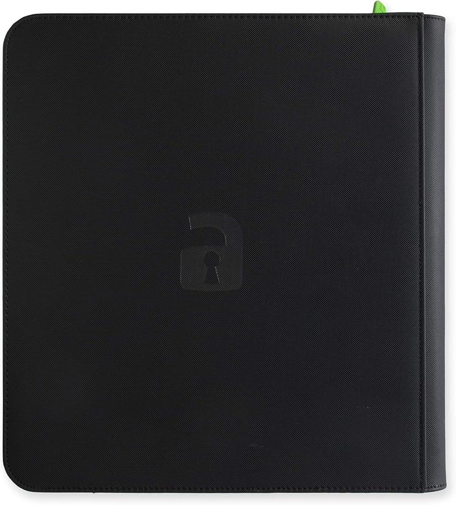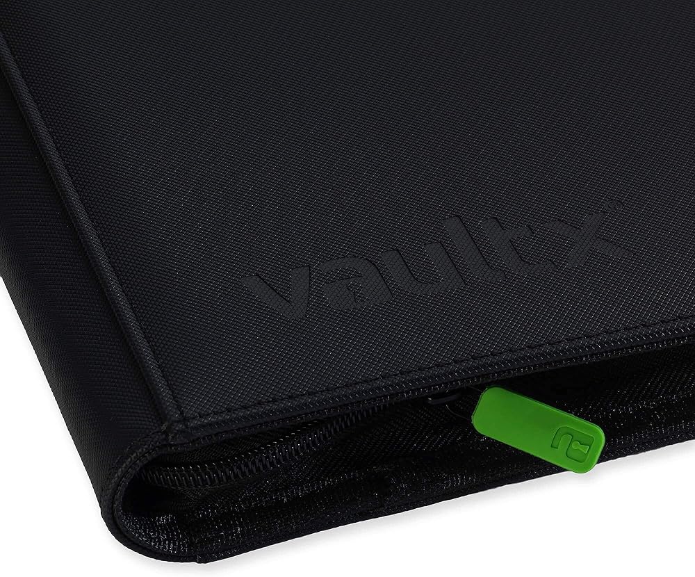VAULT X 12 POCKET 'XL' BINDER WITH ZIP - Premium quality zip-up trading card binder in XL size. With microfibre inner and padded, extra rigid front and rear covers made from non-slip, water resistant Exo-Tec material. 26 pages holding 624 cards. Made from archival-safe, acid-free non-PVC material.