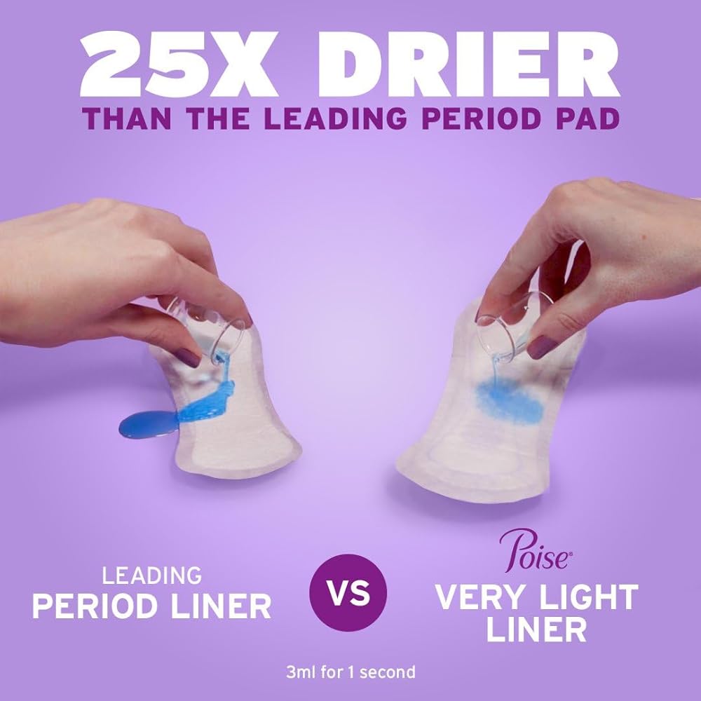 Give yourself up to 100% clean, dry and fresh protection guaranteed* with Poise Daily Microliners Postpartum and Incontinence Panty Liners. Poise liners are designed to offer protection against light bladder leaks, unlike period liners which are meant for menstrual needs. Each bladder leak panty liner is made with Poise's new FreshSense system that neutralizes even strong bladder leak odors for up to 12 hours. They're ultra-absorbent, deliver up to zero leaks and feature a DryTouch layer to help keep you fresh and dry all day long. In fact, Poise pantiliners are 10x drier than the leading period liner and have a CaptureCore that wicks away wetness in seconds for better bladder leak protection than the leading period liner. Plus, these disposable liners are incredibly thin and deliver flexible protection. For heavier absorbency needs, try Poise Incontinence Pads. Shop for Poise discreetly by having it shipped directly to your door or curbside pickup. Poise adult incontinence products are HSA/FSA-eligible in the US. (*Purchase by 12/31/24. Mail in by 1/15/25. Online access required. Limit 1 per household. Original receipt/UPC required. Restrictions apply. See Poise website for details)