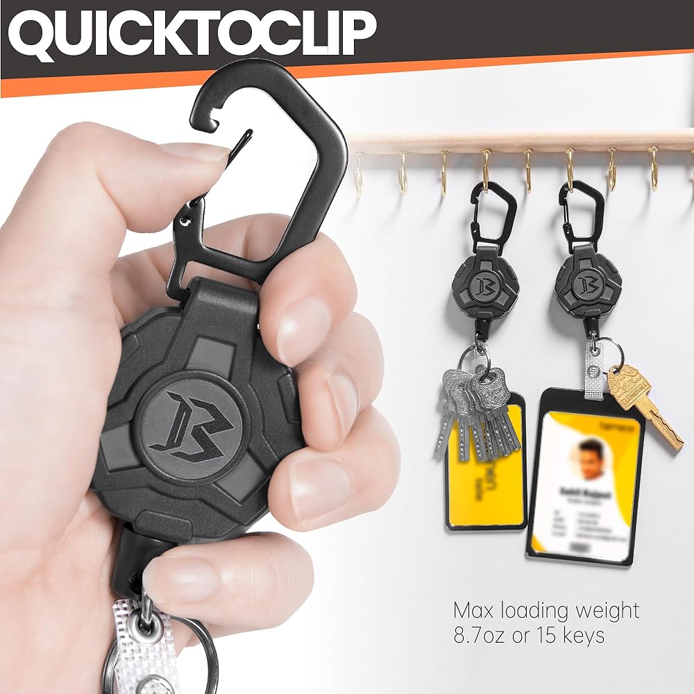 DURABLE: Retractable Keychain clip is made of high-quality ABS material, equipped with stainless steel spring, strong coated wire rope and ID buckle, easy to pull and wear-resistant.