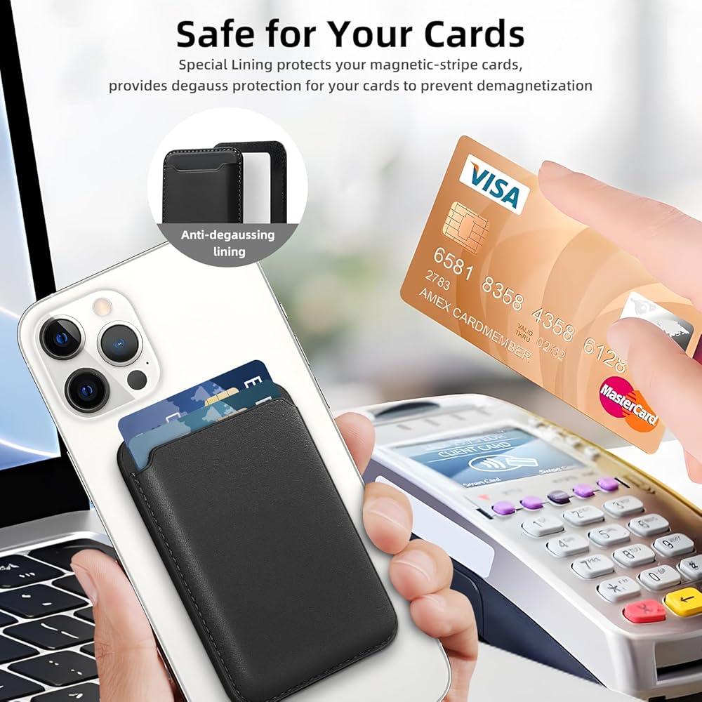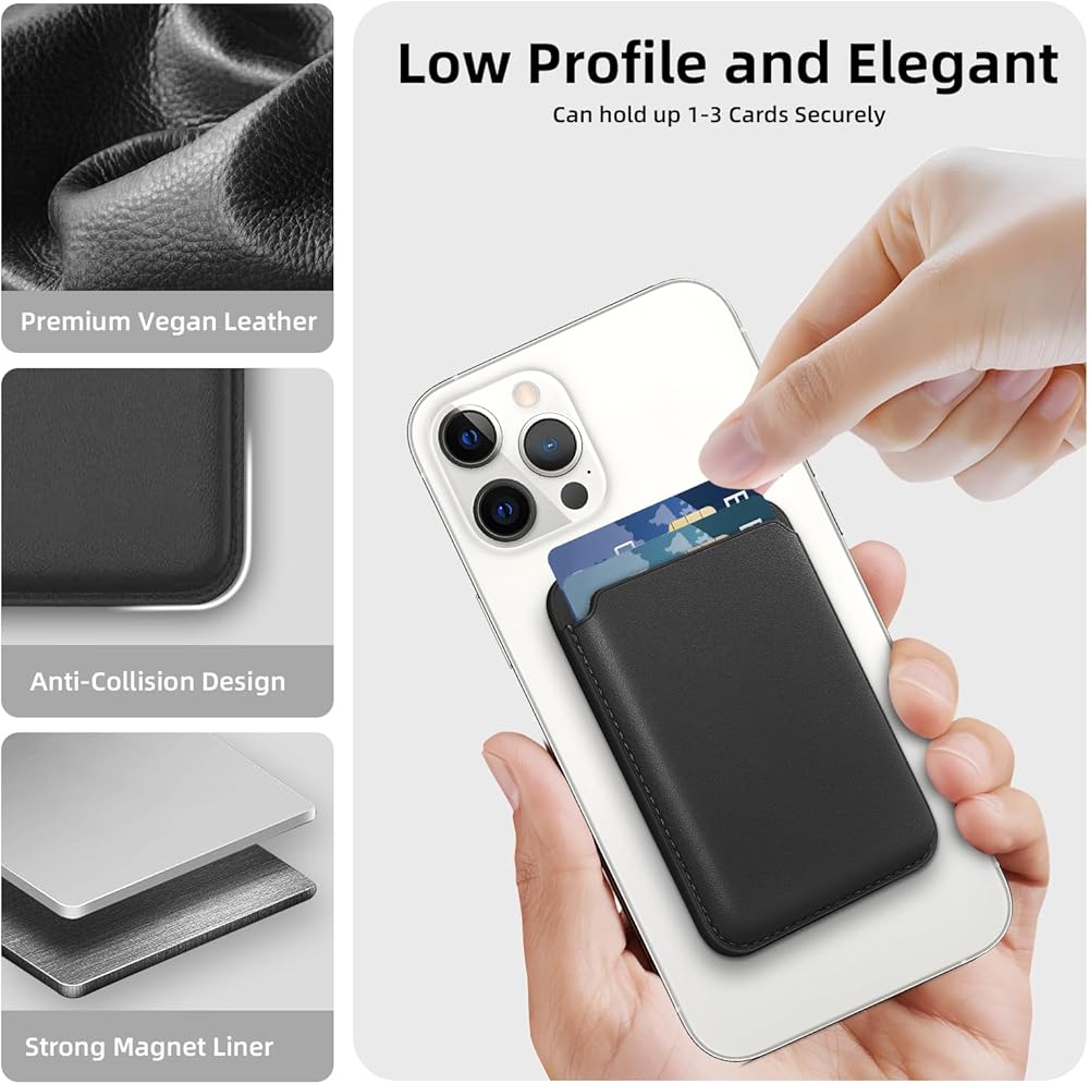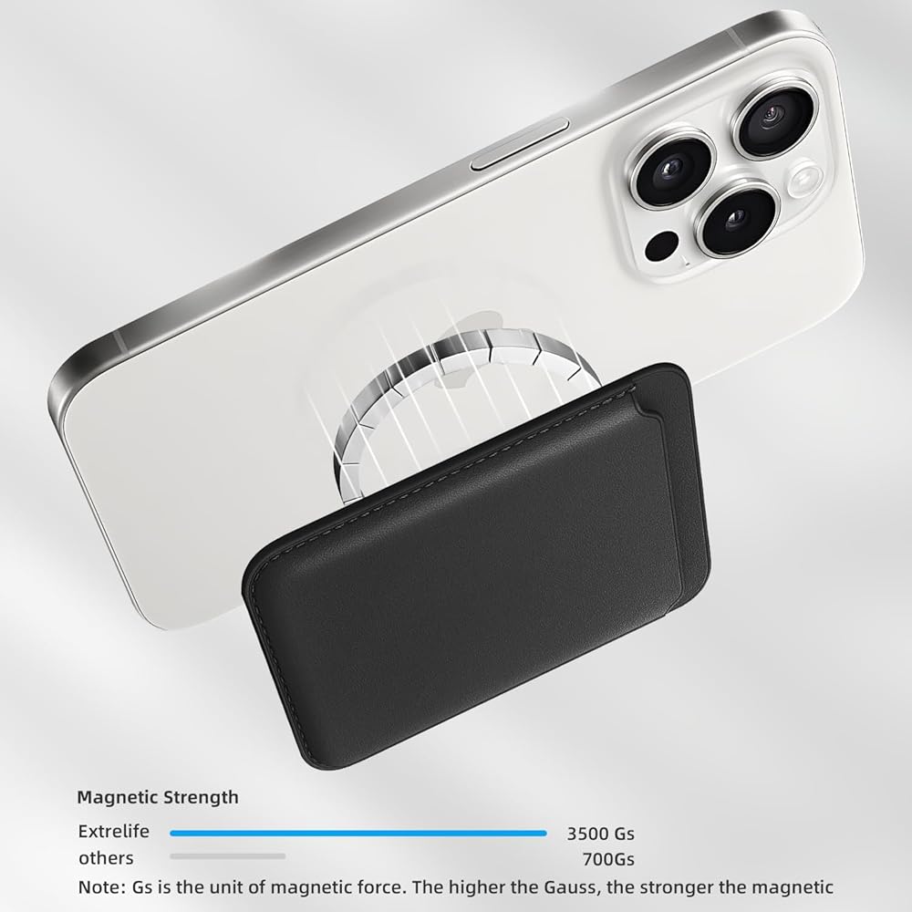 محفظة حامل بطاقات مانجيت فائقة القوة: تتميز بمغناطيس مدمج قوي محدث بقوة 3500 جرام، أقوى بنسبة 20% من المحفظة الجلدية المغناطيسية الرسمية. تأكد من المحاذاة المثالية والتثبيت الآمن لحامل البطاقة هذا بجهازك