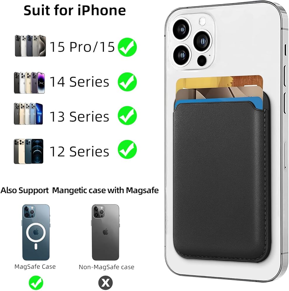 الملاءمة: محفظتنا المغناطيسية متوافقة مع iPhone 15 Pro Max، iPhone 15 Pro، iPhone 15 Plus، iPhone 15، iPhone 14 Pro Max، iPhone 14 Pro، iPhone 14 Plus، iPhone 14، iPhone 13 Pro Max، iPhone 13 Pro، iPhone 13، آيفون 13 ميني، آيفون 12 برو ماكس، آيفون 12 برو، آيفون 12، آيفون 12 ميني. تتميز المحفظة بمغناطيسات مدمجة لا يمكن وضعها مع موديلات iPhone الأخرى أو حافظات غير Magsafe.