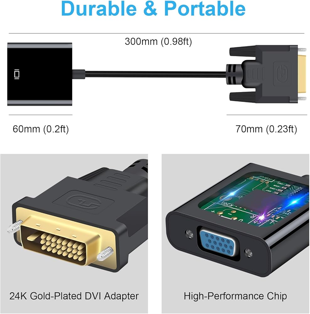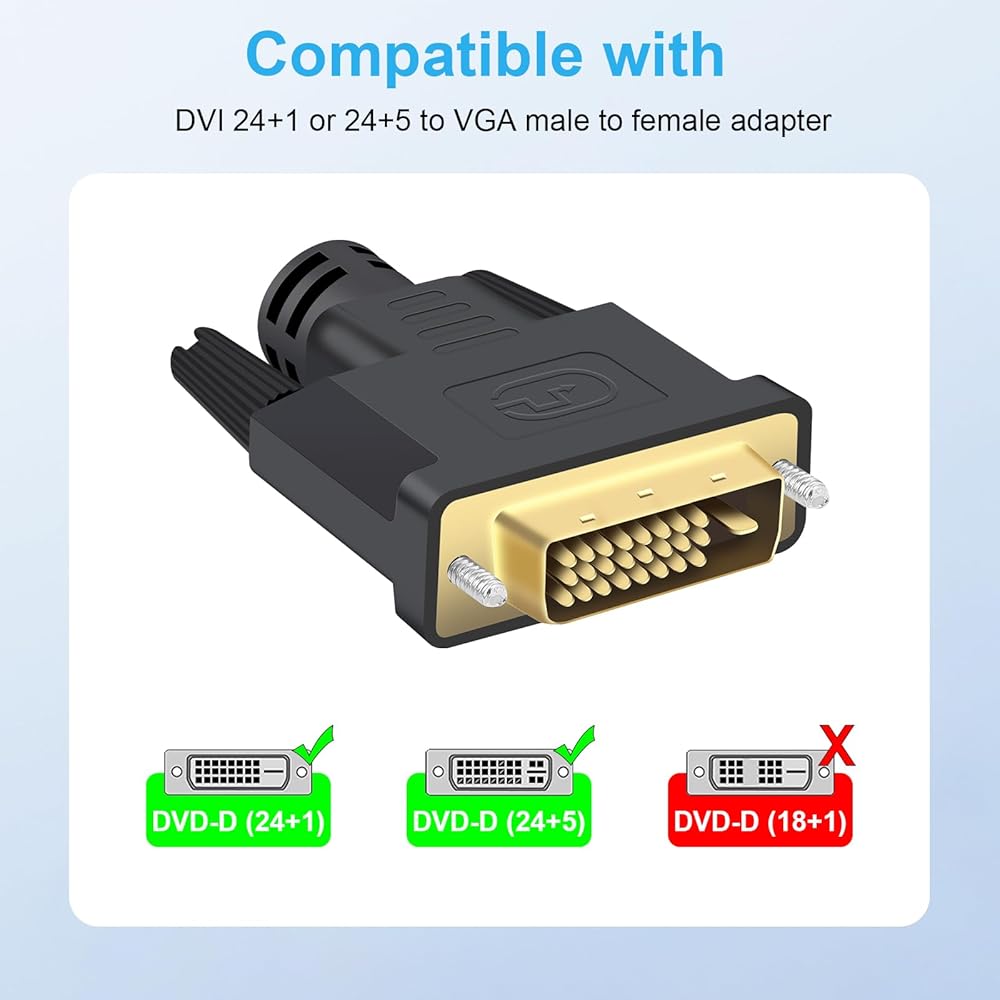 DVI to VGA Cable Adapter DVI-D 24+1 & DVI-I 24+5 to VGA Male to Female Adapter 1080P Full HD DVI to VGA Cable for HDTV PC Host Laptop Monitor and Projector