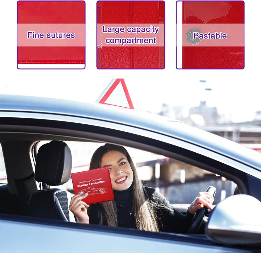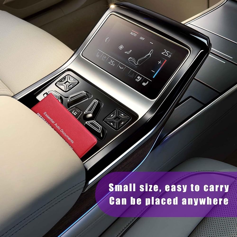 【Large Capacity】: This product has two compartments for you to store various types and sizes of documents, registration and insurance cards, driver's licenses, ID cards, business cards, receipts and more. The unified storage keeps these items in order, organizes your car space well to be neat and tidy, and provides you with a pleasant driving mood.