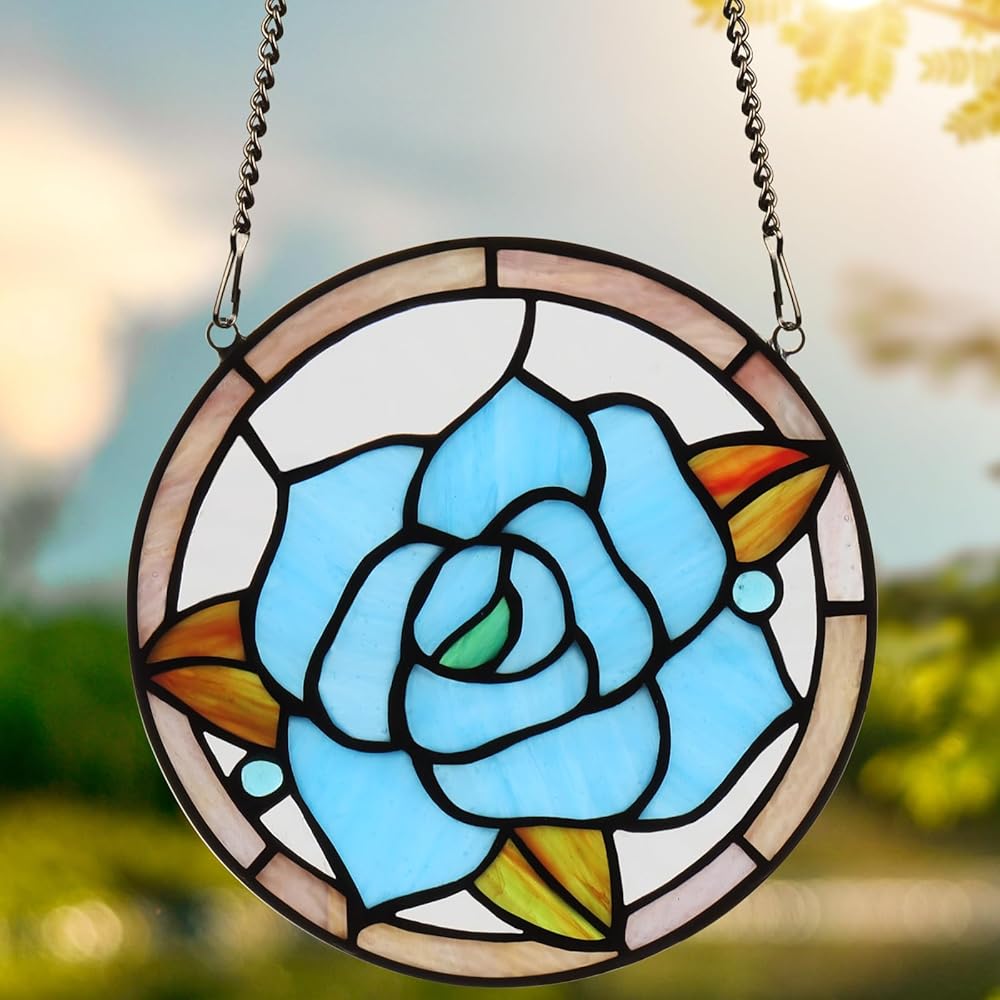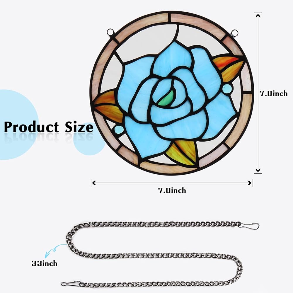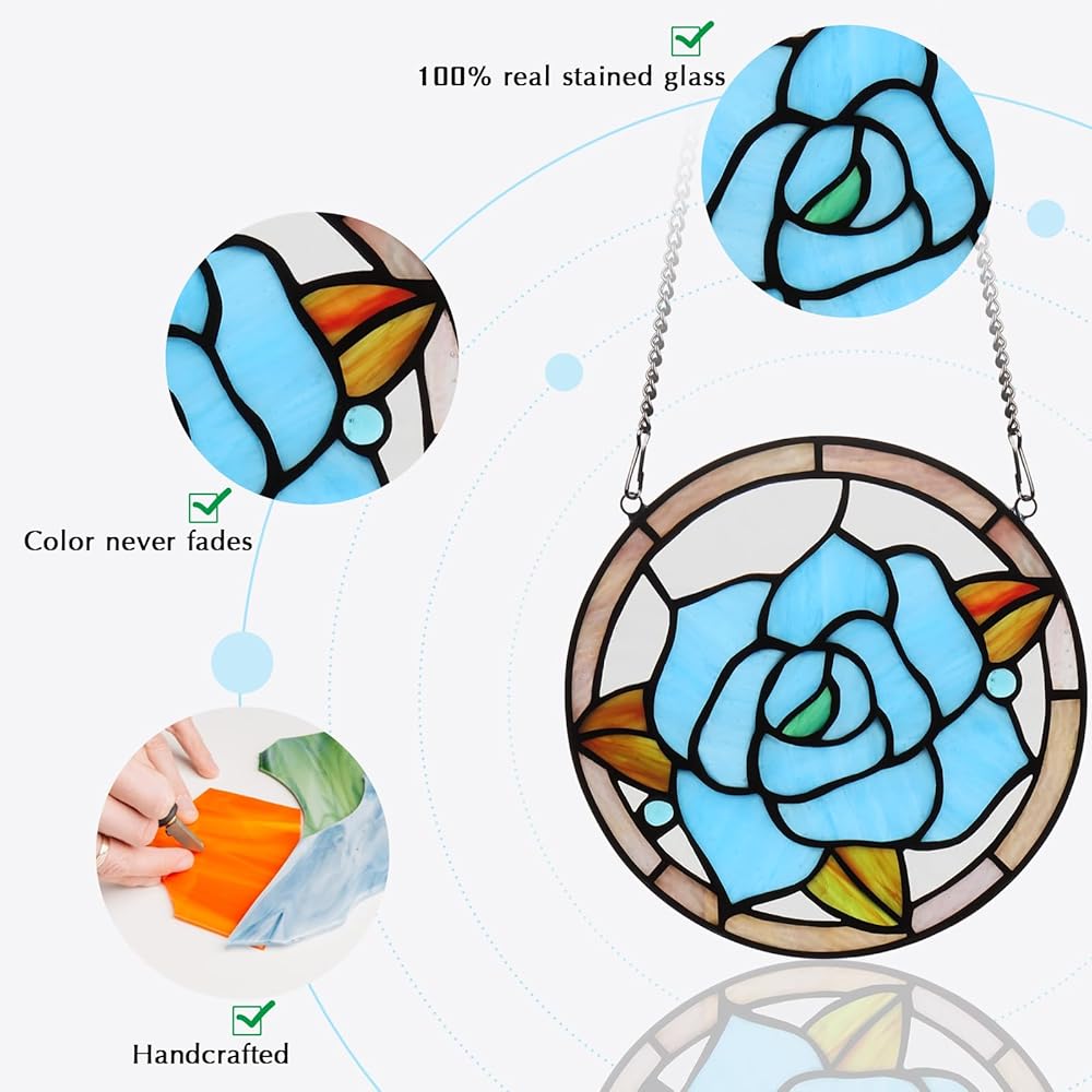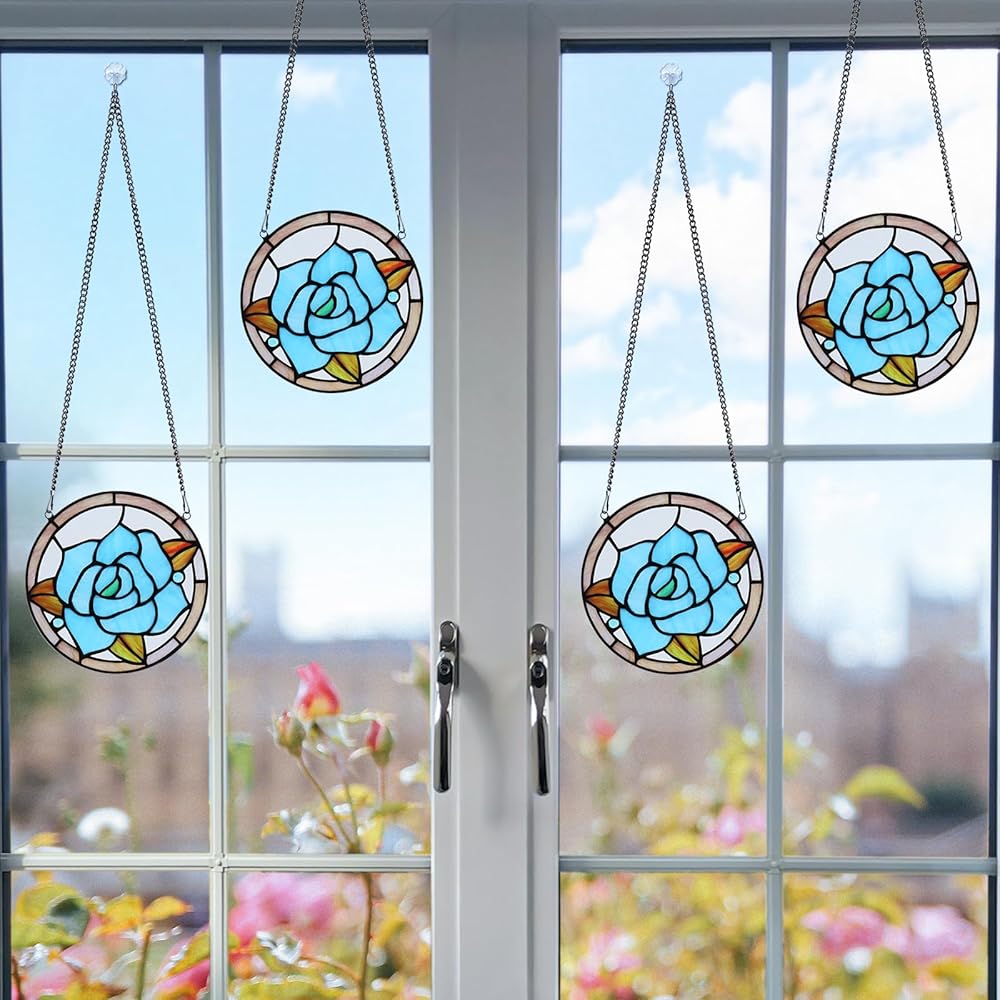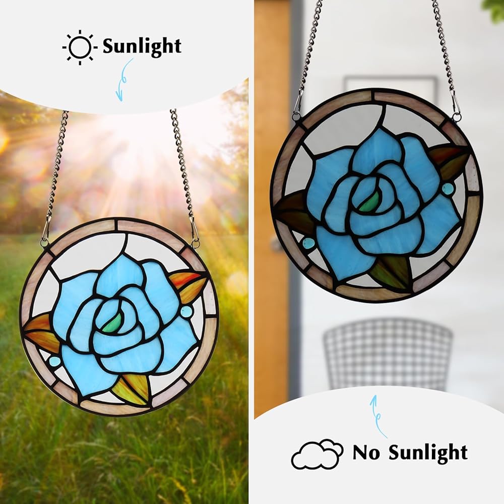 [Beautiful Stained Glass Window Hanging Decor] It's beautiful with the sunlight projecting the colors and it disrupts the reflextion, protects birds from hitting the window, adding a little panache to a window in kitchen/viewing window/bathroom/bedroom/door, The colors of the glass are vibrant and bright, will help brighten up home, made your house like spring all the year round.