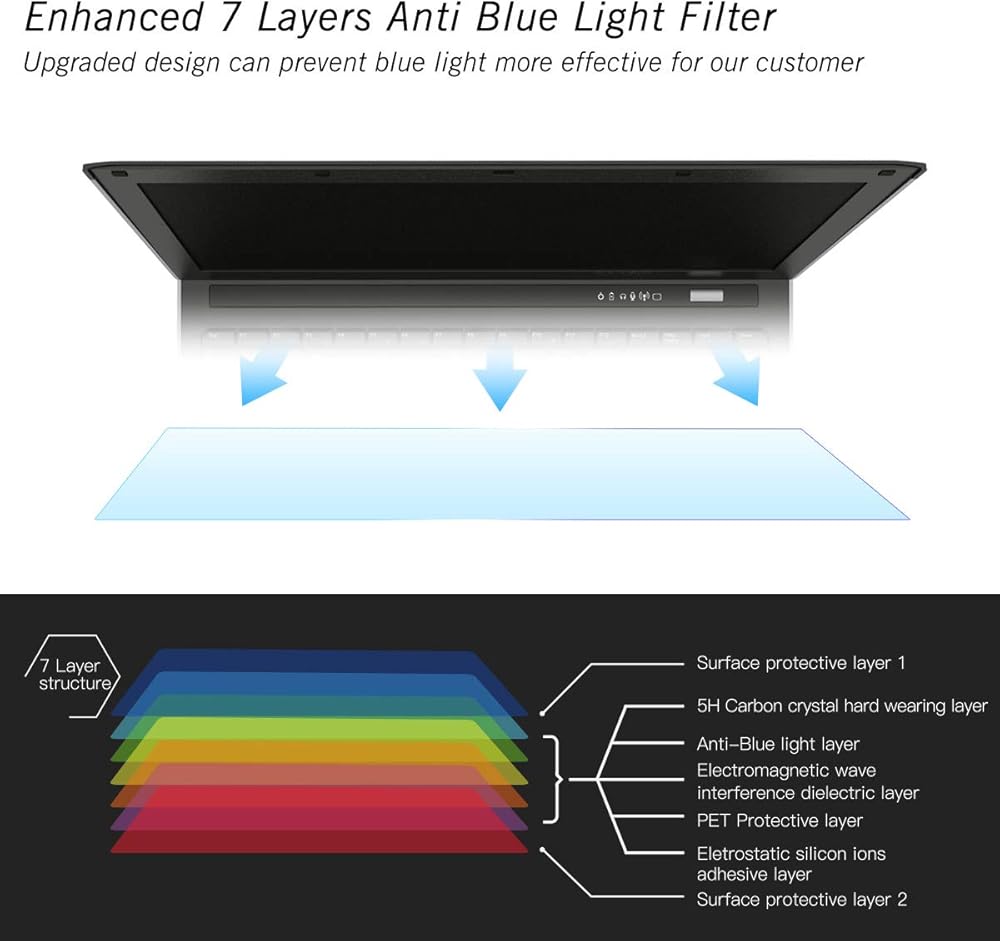 • 【واقي شاشة كمبيوتر محمول متعدد الطبقات】يتميز واقي شاشة الكمبيوتر المحمول غير اللامع بتصميم عبقري متعدد الطبقات. مثل مرشح الضوء الأزرق، مضاد للوهج، حماية من الأشعة فوق البنفسجية 400، حماية من الإشعاع، مضاد للكهرباء الساكنة، حماية طلاء صلابة 9H، يخفف من تعب العينين ويساعدك على النوم بشكل أفضل.