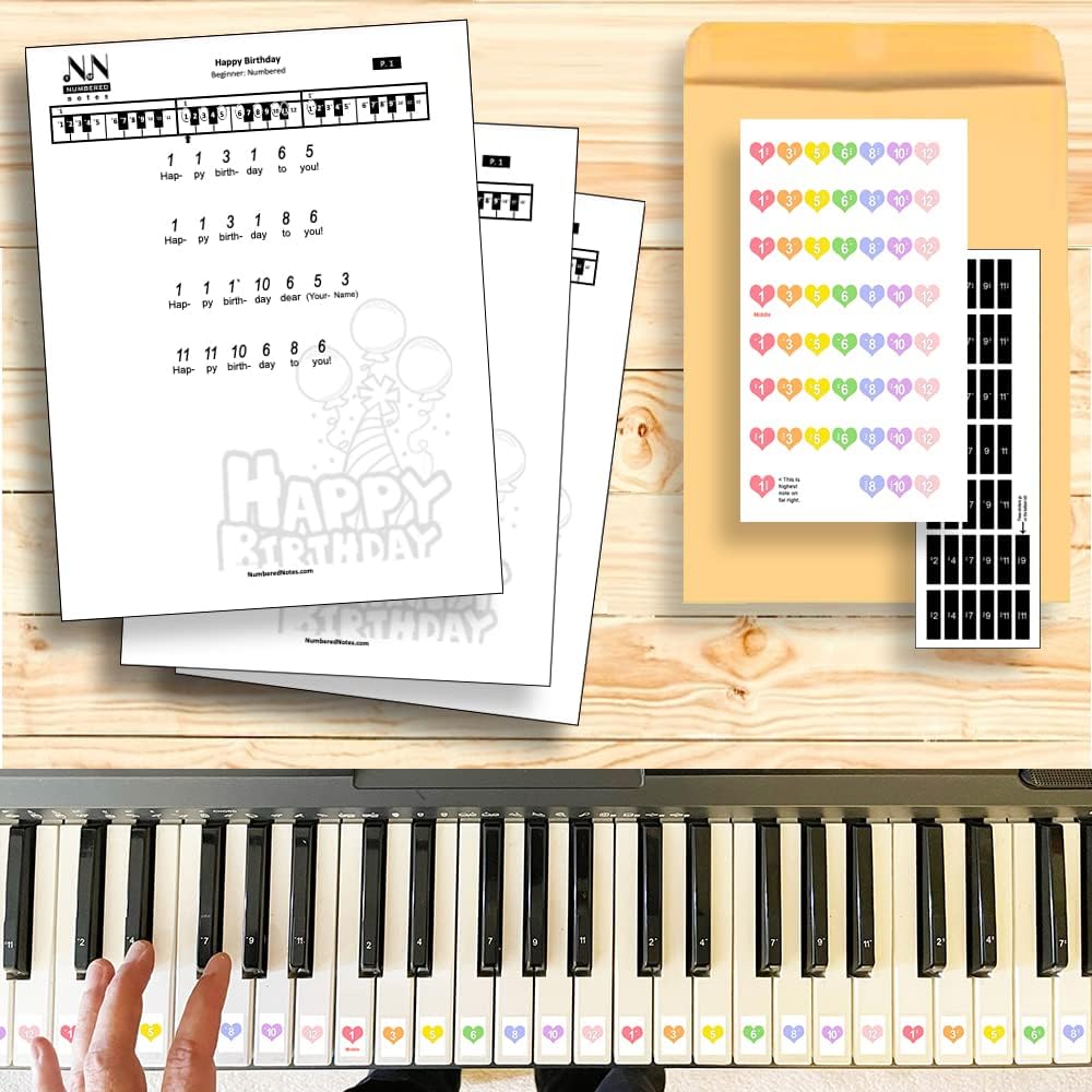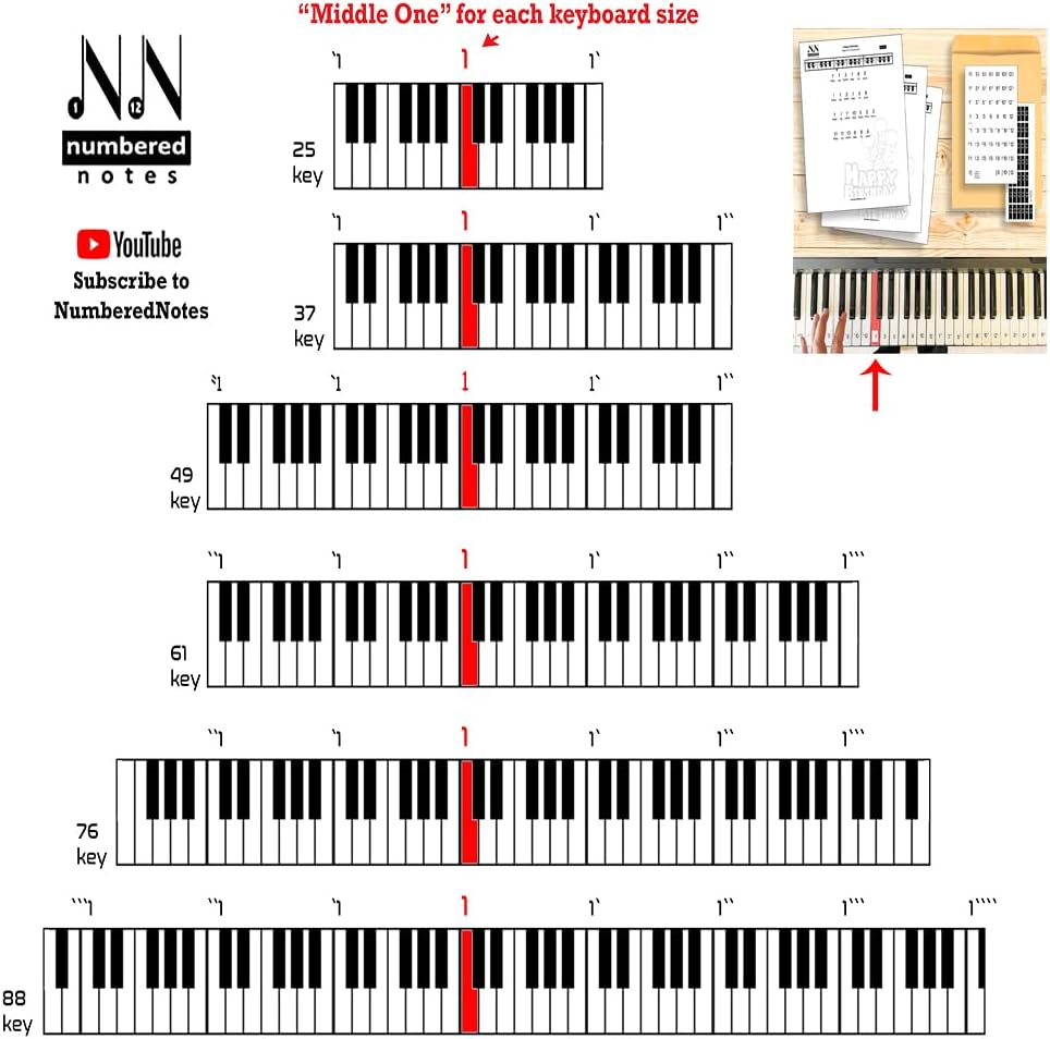 تعمل على كل لوحة مفاتيح: تحتوي العبوة على 88 ملصقًا لمفاتيح البيانو، وهو ما يكفي لأي لوحة مفاتيح مكونة من (25، 37، 49، 61، 76، أو 88 مفتاحًا).