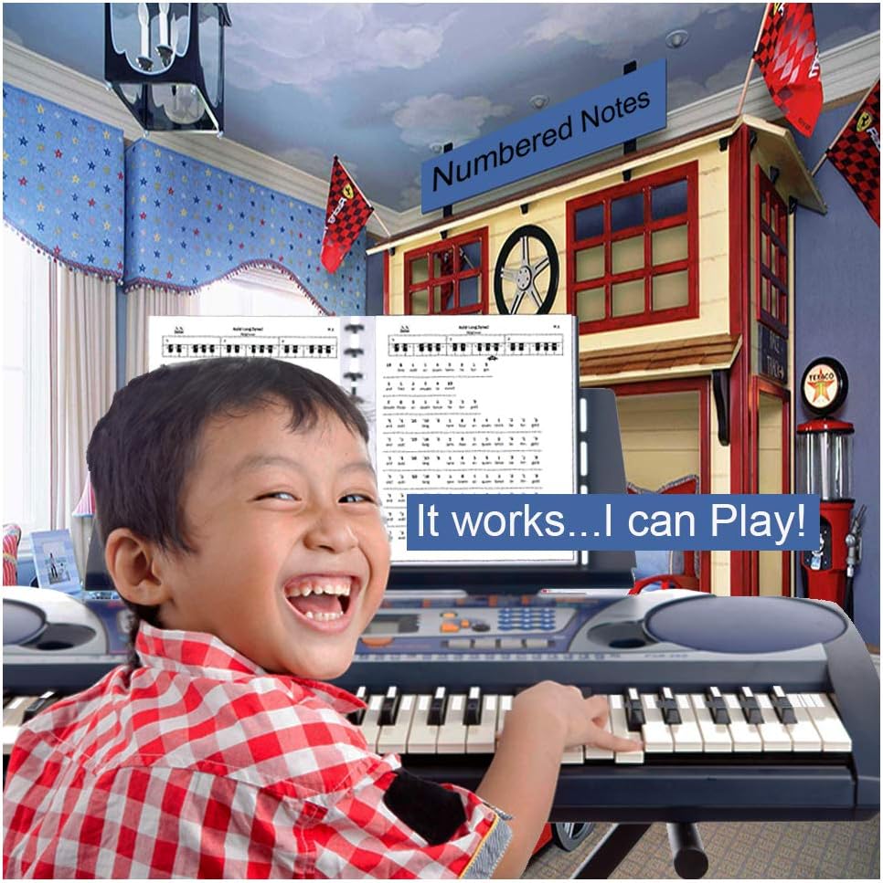 سهولة اللعب: تتيح لك التدوينات الرقمية المتخصصة تشغيل أغانيك المفضلة بسرعة دون أي تدريب موسيقي رسمي. ما عليك سوى وضع الملصقات المرقمة على البيانو الخاص بك ثم تشغيل أغانيك المفضلة المكتوبة بتنسيقنا المرقّم سهل الاستخدام.