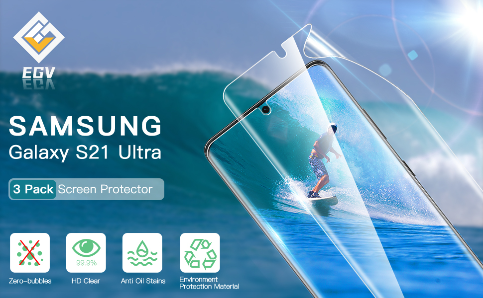 • [الطرز المتوافقة] تتضمن 3 قطع من واقي شاشة TPU الناعم المرن الذي يتوافق مع هاتف Samsung Galaxy S21 Ultra.