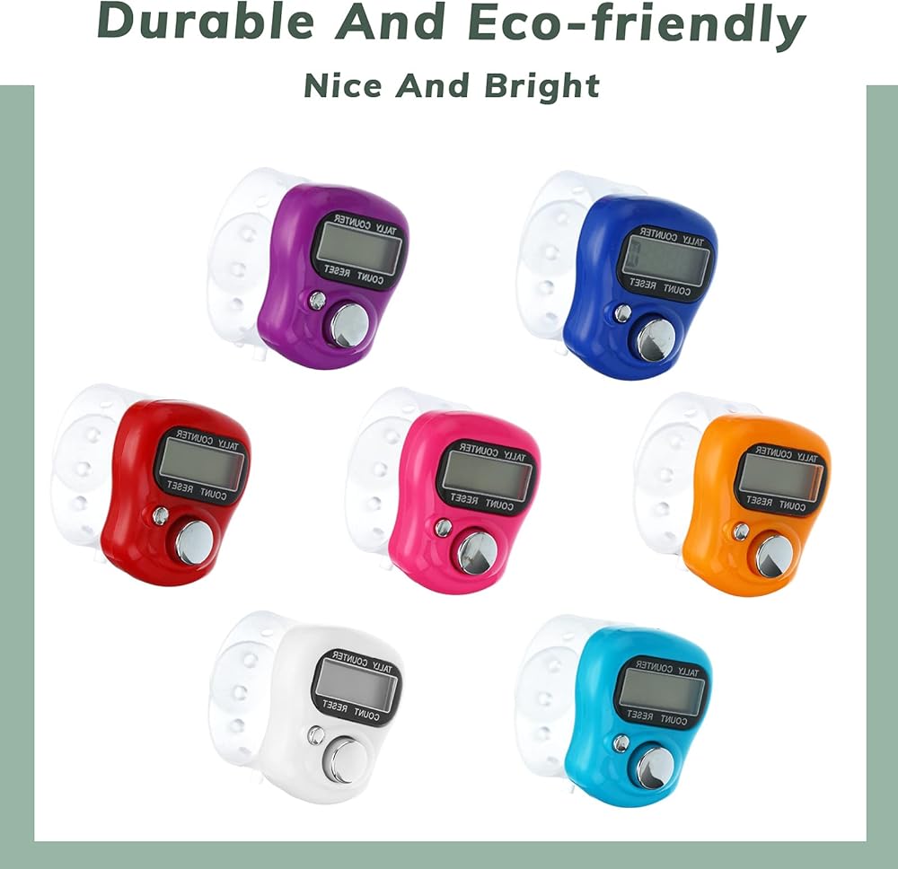 مادة موثوقة: هذه العدادات الرقمية مصنوعة من البلاستيك، وهي متينة وخفيفة الوزن وذات ملمس جيد، ومريحة في الارتداء مع الحلقات، وليس من السهل كسرها أو تشوهها، ويمكن وضعها بشكل متكرر لفترة طويلة تحت الاستخدام المناسب.