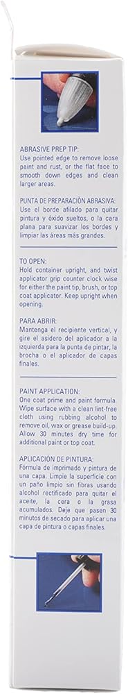 • Four-in-one applicator with a piston style pen-tip for small fixes and a brush applicator for larger scratches and chips