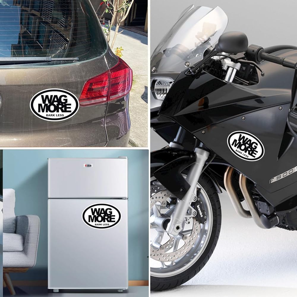 ملصق مغناطيسي بيضاوي Wag More Bark Less - 4×6 بوصات، مغناطيس سيارات عالي التحمل للسيارة والشاحنات وسيارات الدفع الرباعي - إكسسوارات محبي الحيوانات الأليفة، عبر عن حبك للكلاب باستخدام مغناطيس السيارة الفريد هذا