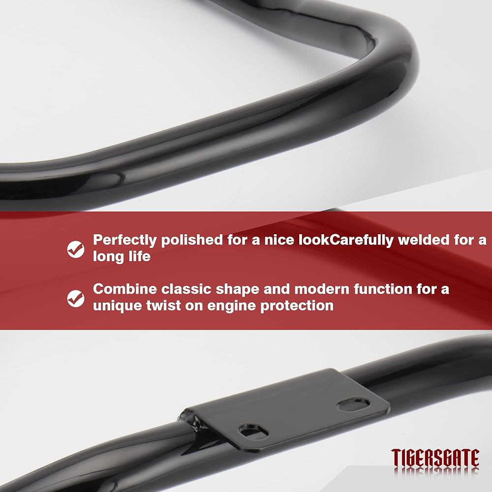 Premium Material: This Engine Guard Crash Bar is crafted using premium steel with high tensile strength, enhances durability and corrosion resistance, is strong and durable, with no deformation after long use time combines classic shape and modern function for a unique twist on engine protection.