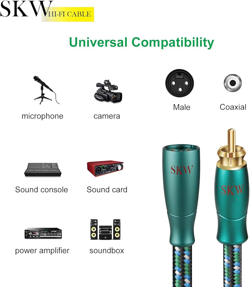 كابل ذكر SKW من سلسلة HC من سلسلة XLR ذكر إلى RCA بطول 3.2 قدم/1 متر (كابل واحد)