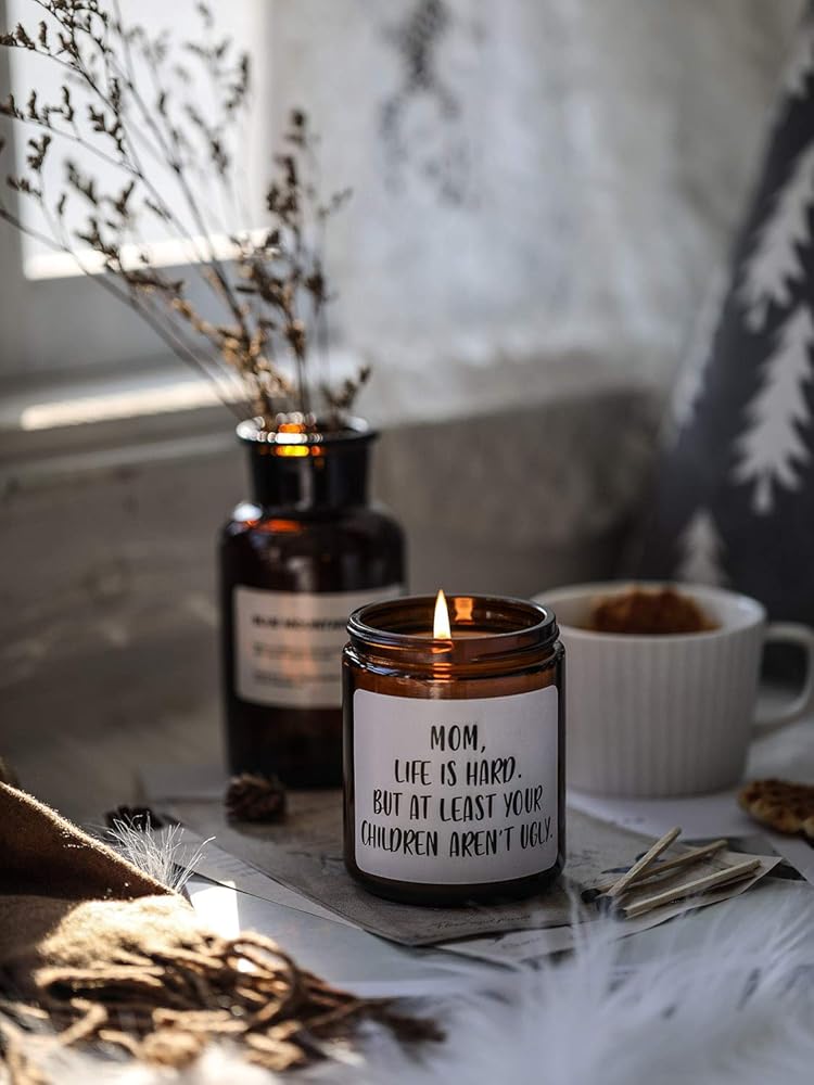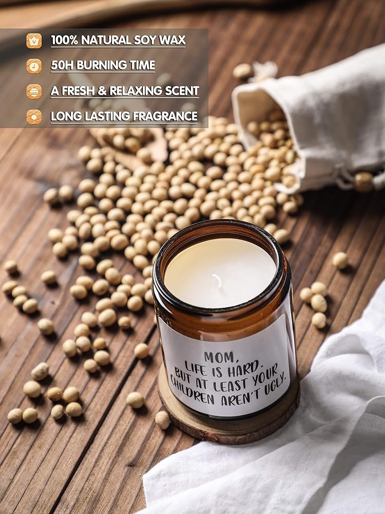 Gifts for Mom from Daughter Son,Funny Moms Candle, Mom Life is Hard Candles,Mothers Day Gifts Birthday Thanksgiving Days Christmas Gift, Sandalwood & Rose Scented Candle,7oz