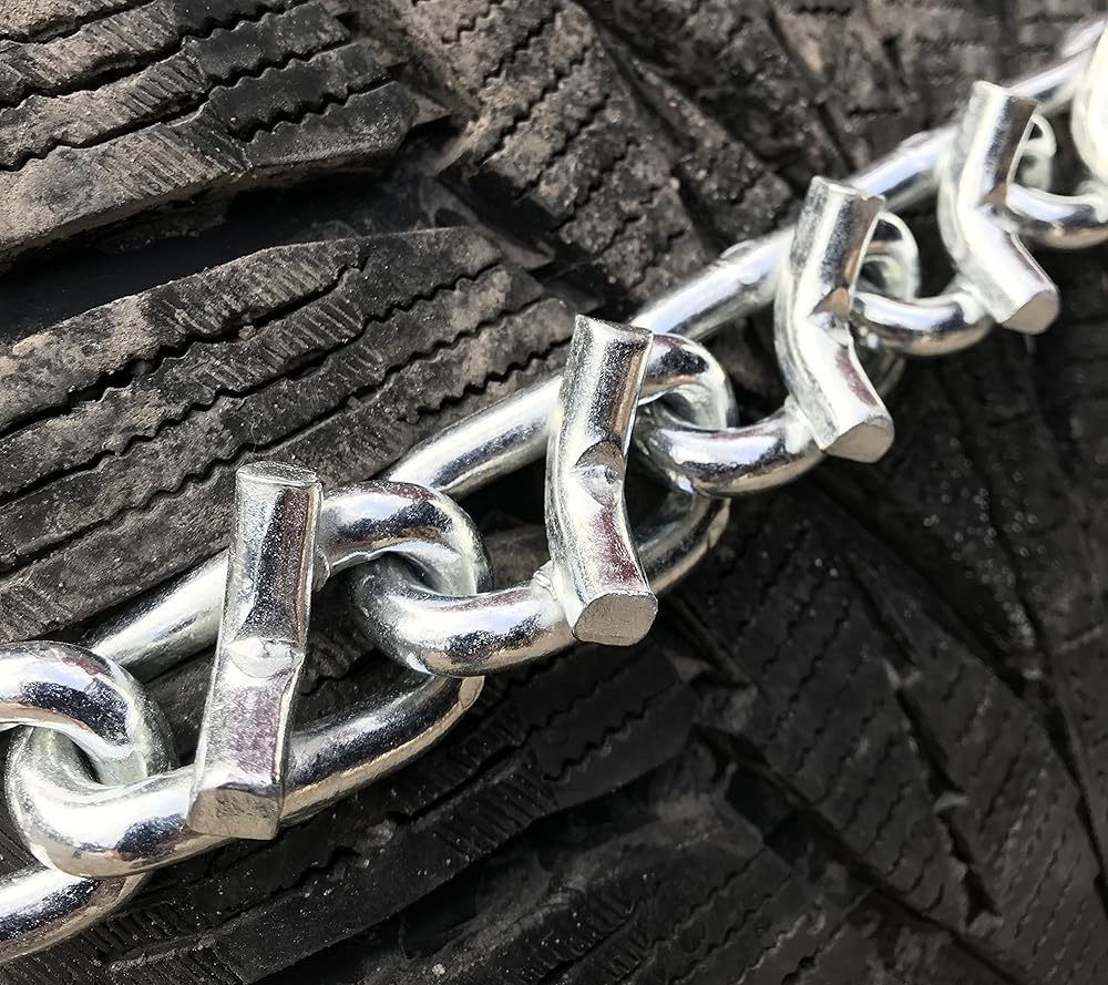 BORON ALLOY 10B21 STEEL LASTS UP TO 83% LONGER THAN STANDARD ROCKWELL 53 STEEL. V-BAR Heavy duty twisted link Truck Tire Chain. 7.14mm thick. Recommended for over the road, chain law, semi trucks.For plowing or extended use, the Heavy duty truck tire chains below are recommended when available in your size. For easier installation of twisted link Truck Tire Chains see our Sno-Chain Ramps. Optional rubber or spring tensioners are recommended. If your tires are deep lug, mud, load range E, or AT tires, please contact us prior to purchasing.
