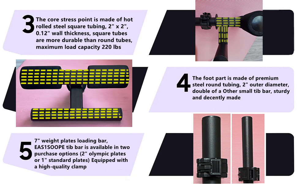 هذا القضيب مصنوع من الفولاذ الصلب الملحوم الثقيل ويأتي مزودًا بمشبك عالي الجودة يؤمن ألواح الوزن بإحكام على القاعدة لمنع الحركة أثناء الاستخدام.