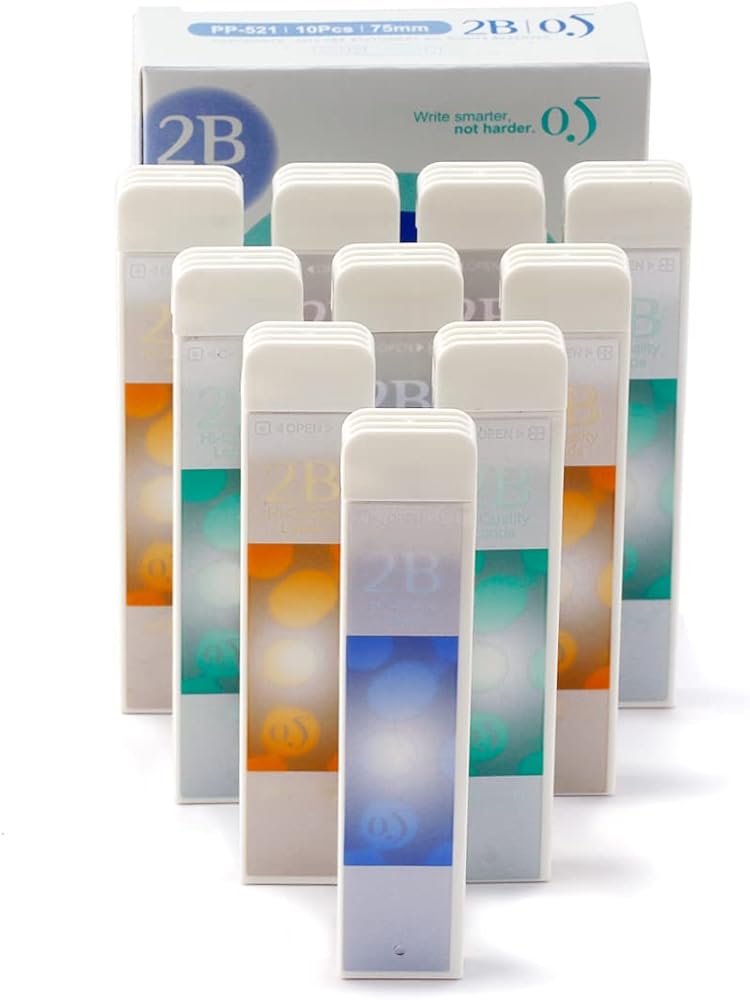 قلم رصاص ميكانيكي 2B 0.5 ملم ذو نقطة دقيقة مقاومة للكسر من الراتنج يمكن إعادة تعبئة 10 أنابيب