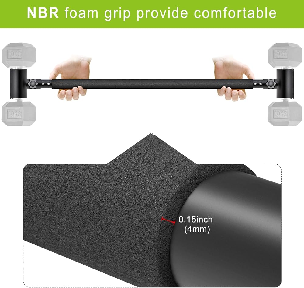 【Durable and Stable】The Swiss Bar is made of high-quality steel with a black powder-coated finish that prevents rust and is built to last. This Swiss barbell can hold up to 1,000 pounds of weight with constant stability and durability.