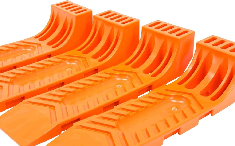 منتجات Mytee زلاجات الإطارات المتشابكة لشاحنة السحب والهادم وحامل التراجع البرتقالي الآمن (مجموعة 4 قطع)