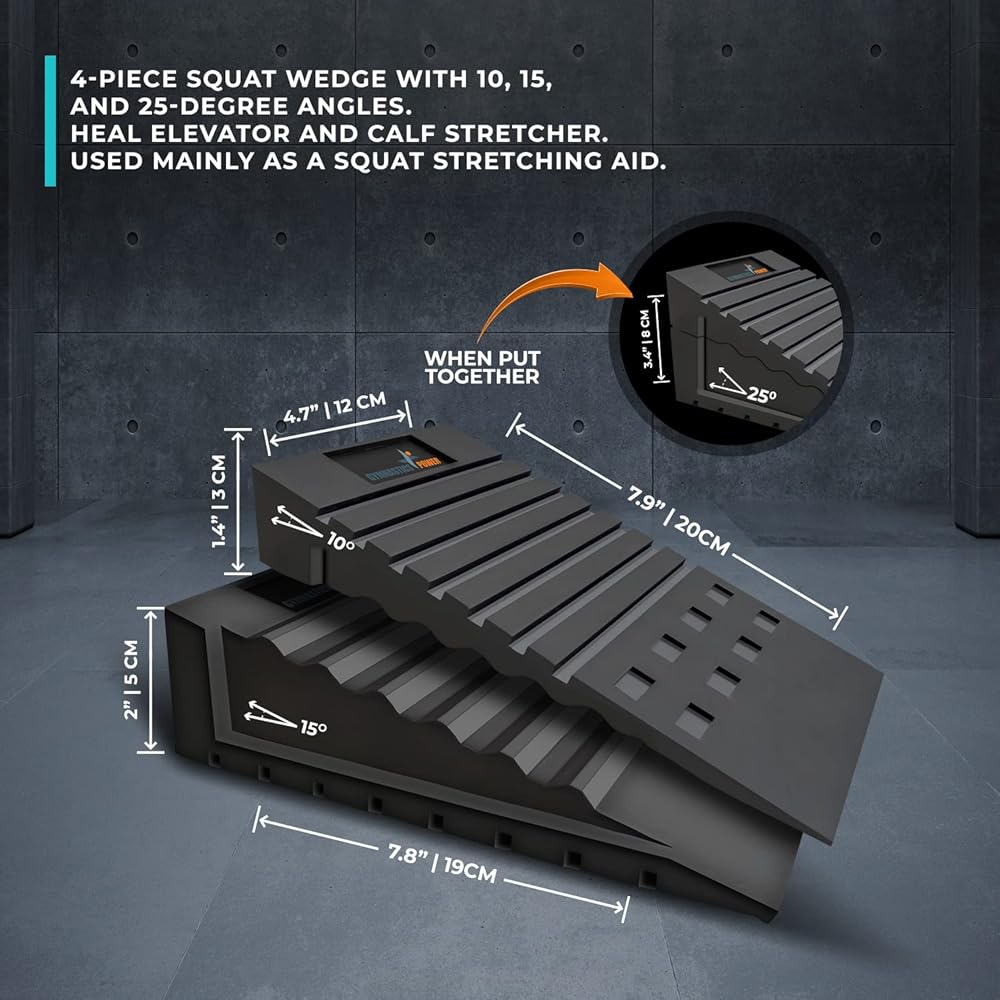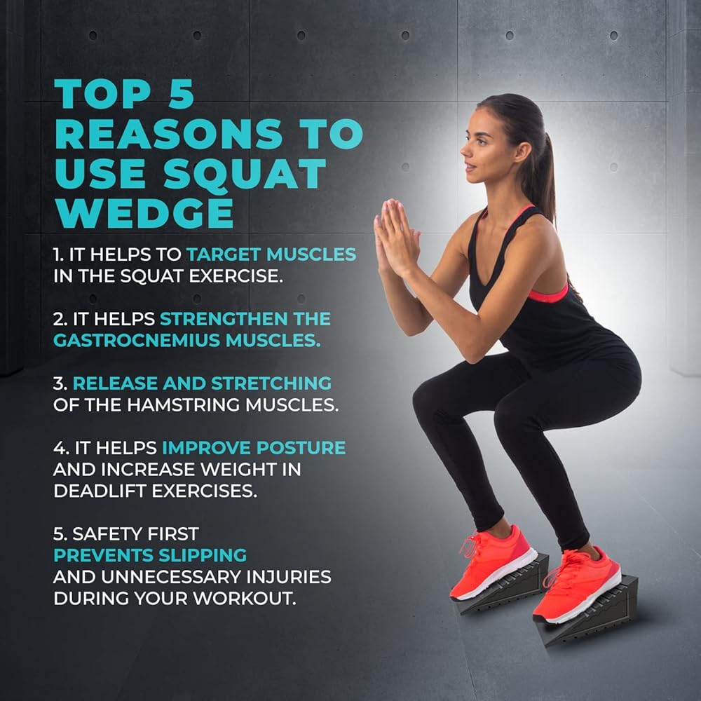 يوفر إسفين القرفصاء هذا دعمًا ممتازًا للكاحلين والركبتين والأرداف بالارتفاع المناسب، مما يحسن أداء القرفصاء، مما يسمح لك بتحقيق توازن أفضل وتحسين مرونتك وحمايتك من الإصابة.