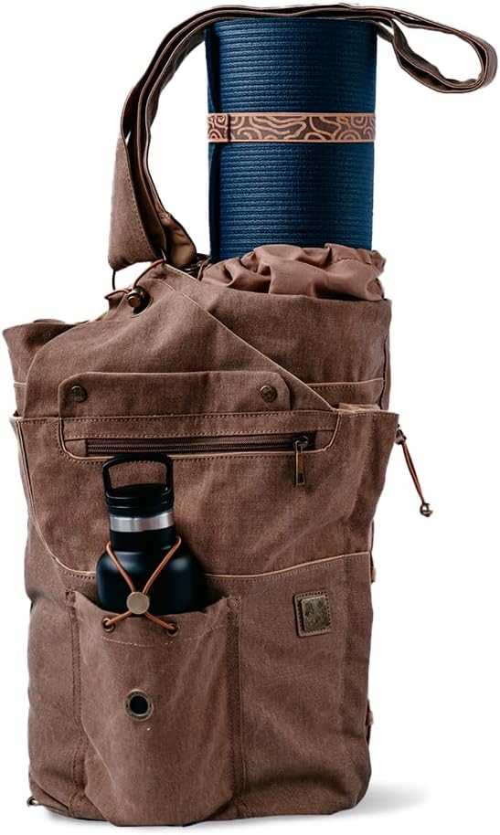 • تحتوي حقيبة سجادة اليوجا هذه على مساحات متعددة لتجعلك أكثر راحة أثناء رحلة اليوجا. يوجد جيبان بسحاب لتنظيم هاتفك المحمول، والجهاز غير اليدوي، والمحفظة، والمفاتيح، والبطاقات، والمزيد. يوجد أيضًا جيب مخصص للزجاجات محاط بالمرونة. على طول حجرة سجادة اليوغا الرئيسية، توجد حجرة للمناشف أيضًا.