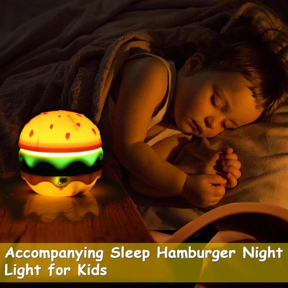 Cute Desk Lamp for Kids, Rechargeable Hamburger Small Desk Lamps with Adjustable Neck Dimmable Touch Switch, Nursery Night Lights, Kawaii Desk Accessories, Kawaii Room Decor for Boys Girls Gifts
