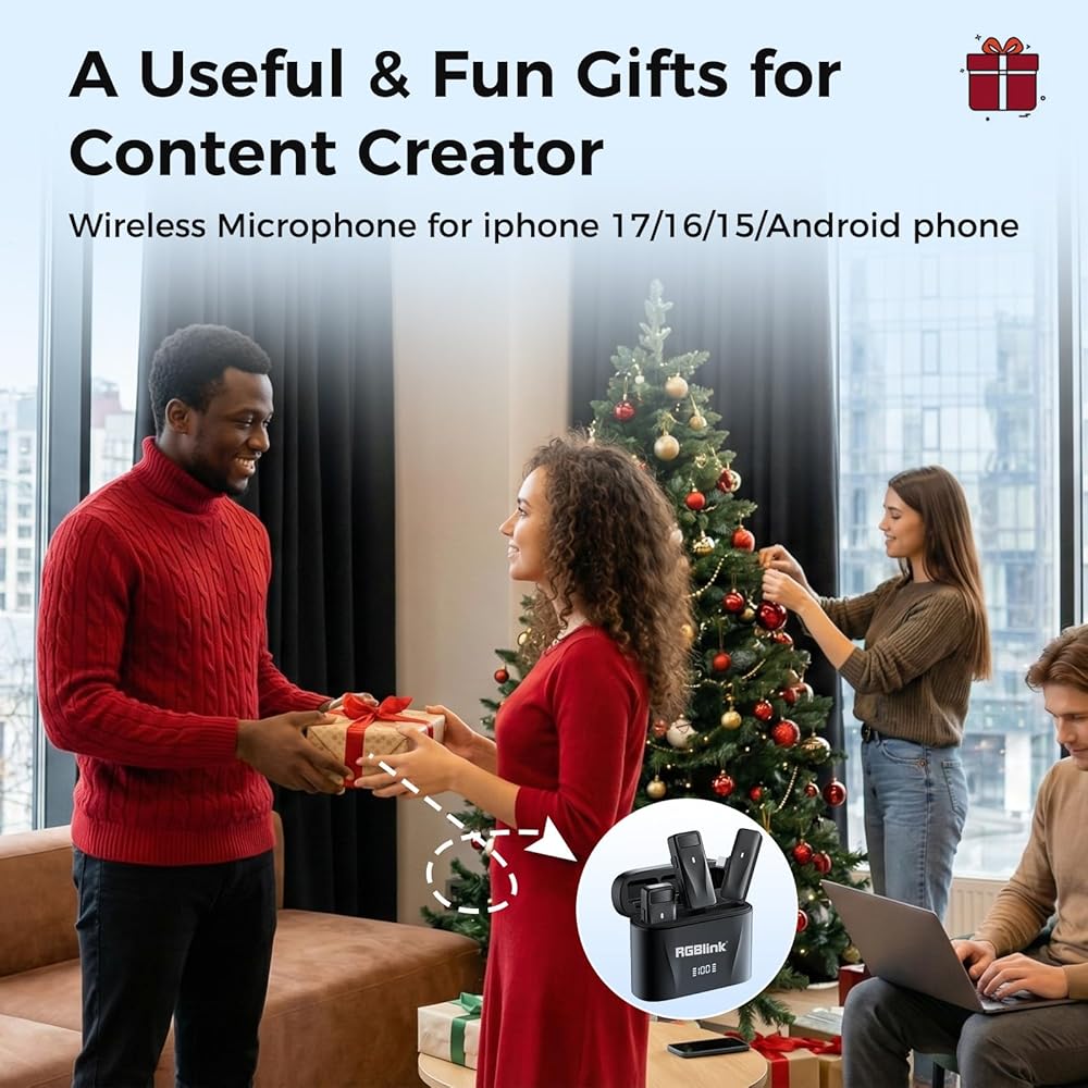RGBlink Wireless Lavalier Microphone for iPhone 17,16,15 Pro Max, USB C Smartphone, Android - 2pcs Noise Canceling Wireless Clip on Lapel Mic for Recording Vlogging,Interview,Gifts for Content Creator