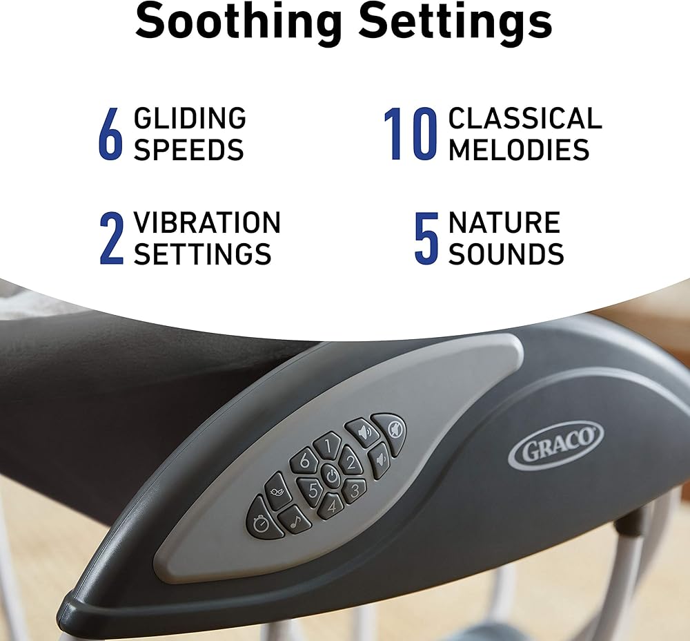 أرجوحة الأطفال جراكو Glider LX هي أرجوحة انزلاقية فريدة من نوعها تهدئ بنفس الحركة اللطيفة التي تستخدمها عند احتضان الطفل وتريحه في عربة الأطفال. مقعد الأرجوحة المخملي الواسع مع رأس وجسم الرضع قابلين للإزالة والإمالة القابلة للتعديل يحافظ على راحة الطفل، بينما تحافظ الموسيقى على تسلية الطفل. تساعد الميزات الإضافية بما في ذلك سرعات الانزلاق القابلة للتعديل والاهتزاز بسرعتين وقضيب ألعاب علوي على تهدئة الطفل.
