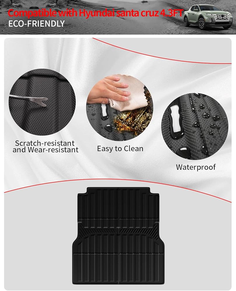 حصيرة سرير الشاحنة متوافقة مع 2022 2023 2024 Hyundai Santa Cruz Bed Mat Trunk Bed Mat TPE جميع الأحوال الجوية شاحنة سرير بطانة 4.3FT بطانة سرير قصيرة 2023 Santa Cruz Accessories (4.3FT حصيرة سرير قصيرة)
