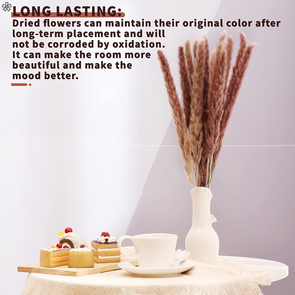 ❀مادة طبيعية: زهور مجففة طبيعية 100% غير سامة وغير ضارة. تتميز عشبة البامبا الطويلة هذه بملمس حريري إضافي. يشبه الريش، عديم الرائحة. عشب بامباس المجفف Wispy لا يذبل ولا يسقط أبدًا.