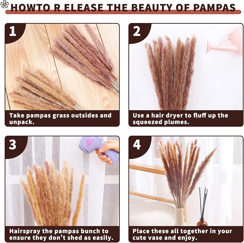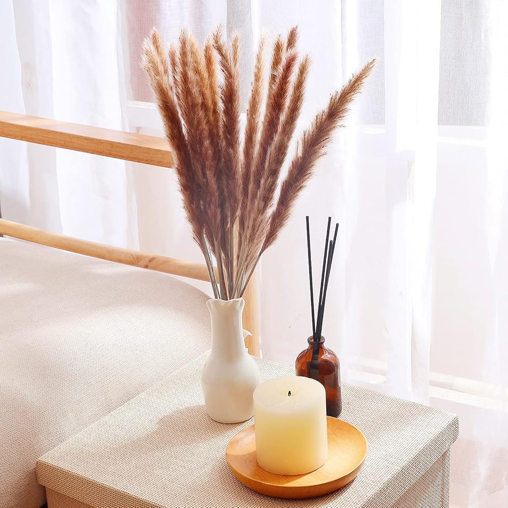 ❀ديكور زفاف أنيق: تعرف على الطريقة المذهلة لتزيين حفلات الزفاف البوهيمية بعشب البامبا البني المنفوش. مثالية لقطع مركزية الزفاف، وباقة الزفاف، وقوس الزفاف، وشجرة الكتاجون، وحفلات الزفاف الرومانسية والساحرة والبوهيمية مع أعمدة عشب بامباس الريشية.