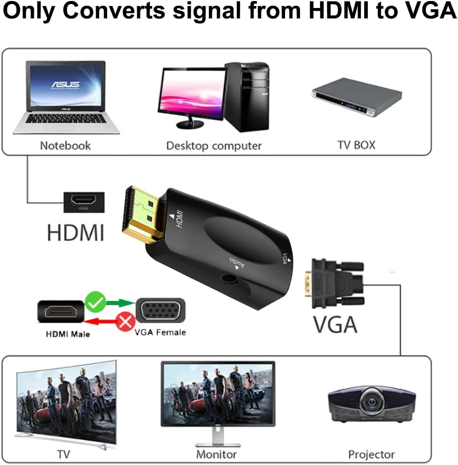 HDMI to VGA 5-Pack, Computer HDMI to VGA Monitor Adapter, Male HDMI to VGA Female Adapter 1080P Video for Computer, Desktop, Laptop, PC, Monitor, Projector, HDTV, Raspberry Pi, Roku, Xbox and More