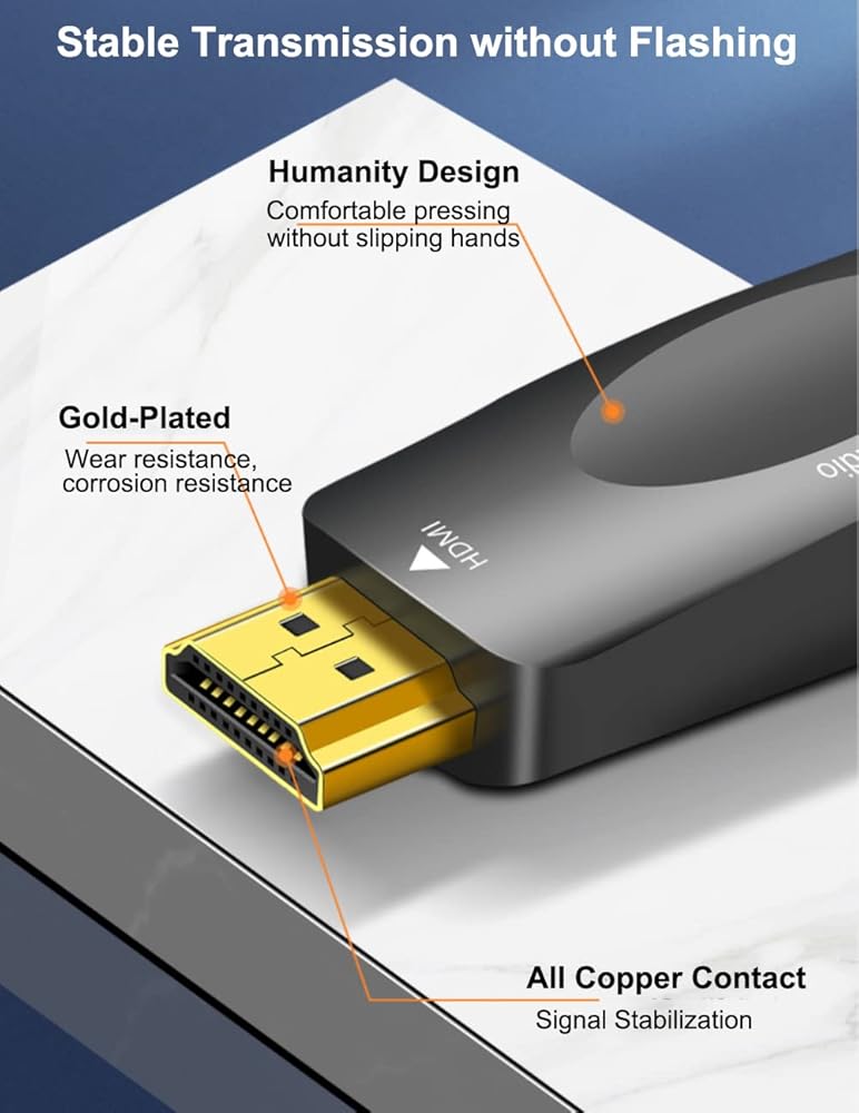 【Unique Design】1.Gold plated HDMI connector resists corrosion and abrasion and improve the signal transmission performance. |2. The groove anti slip design makes you more comfortable and convenient to use.