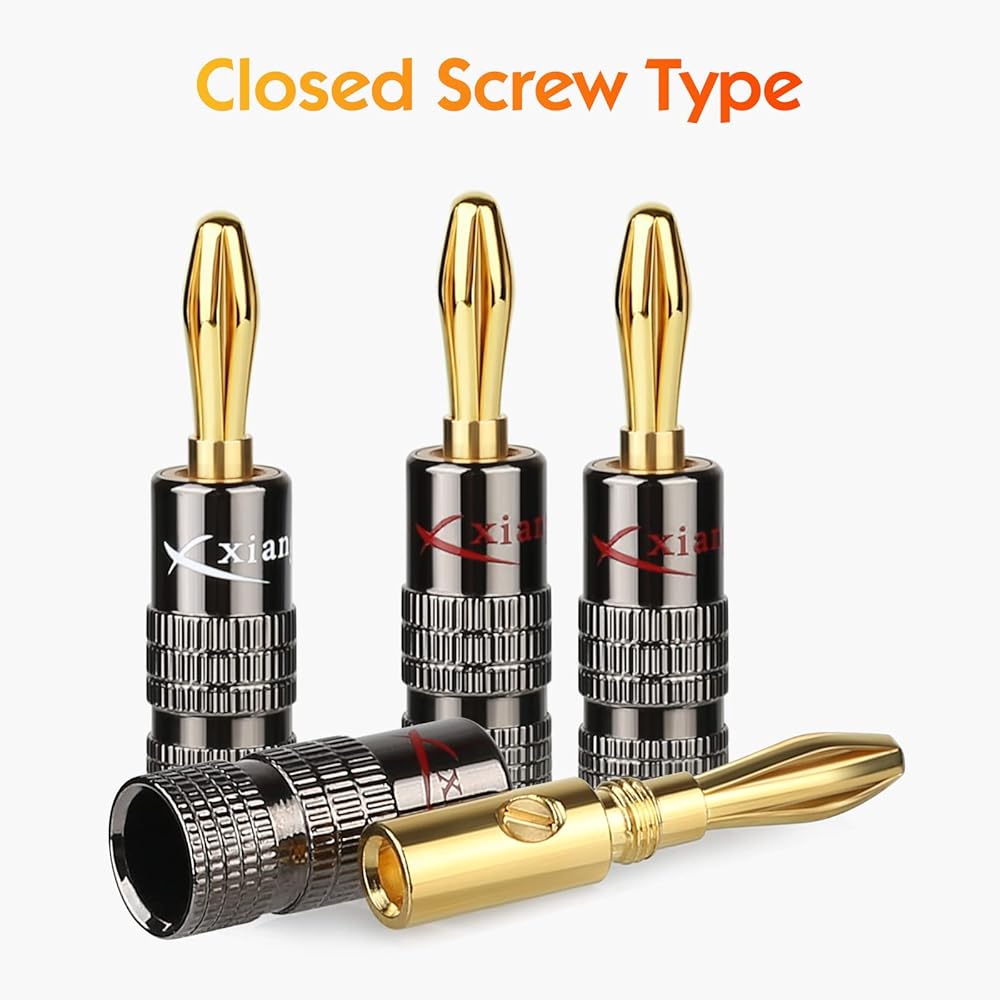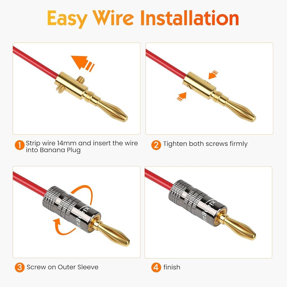 Make your audio setup a breeze with our versatile audio plugs! The 4mm banana plugs are widely used and perfect for speaker wire installation. Lightweight and portable, you can use them in any occasion. Compatible with A/V receivers, amplifiers, surround sound systems, and ideal for use with banana wall panels. Whether you're setting up a home theater or upgrading your audio system, our audio plugs are the ideal choice for your needs
