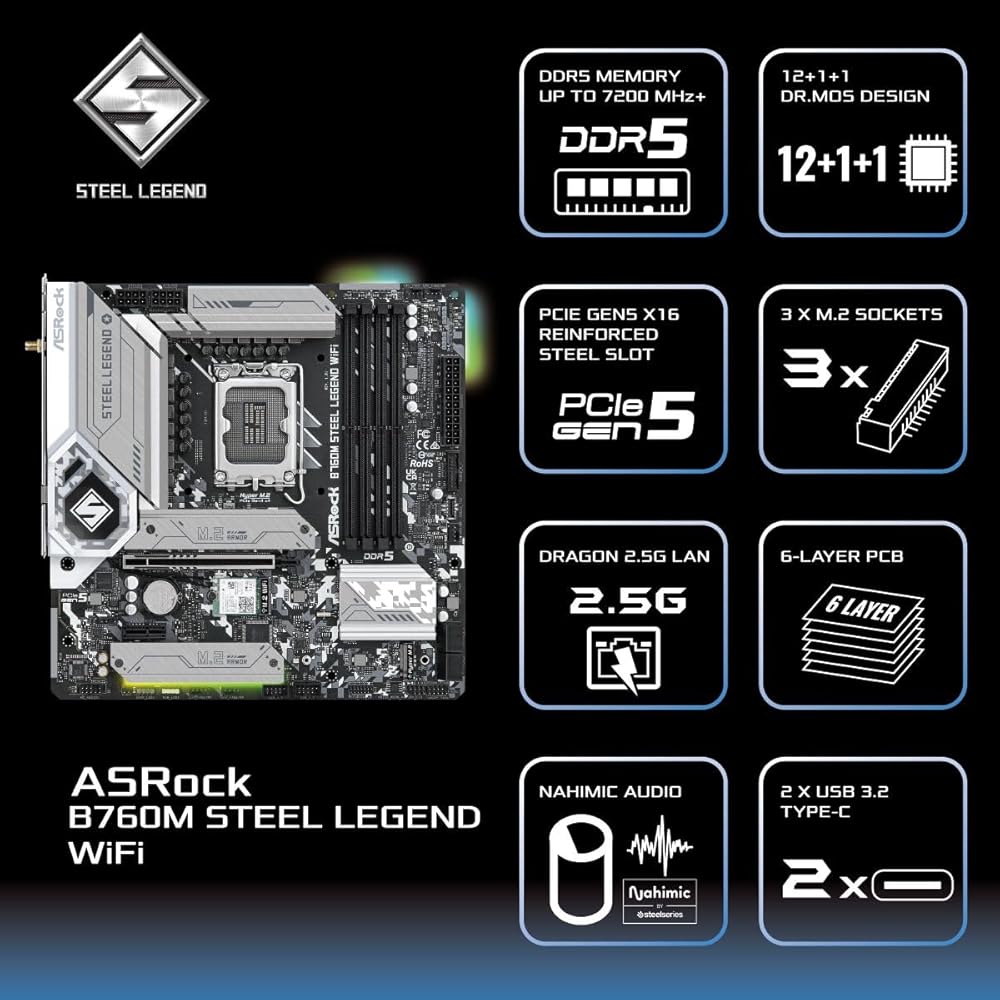 اللوحة الأم آسروك B760M ستيل ليجيند واي فاي
