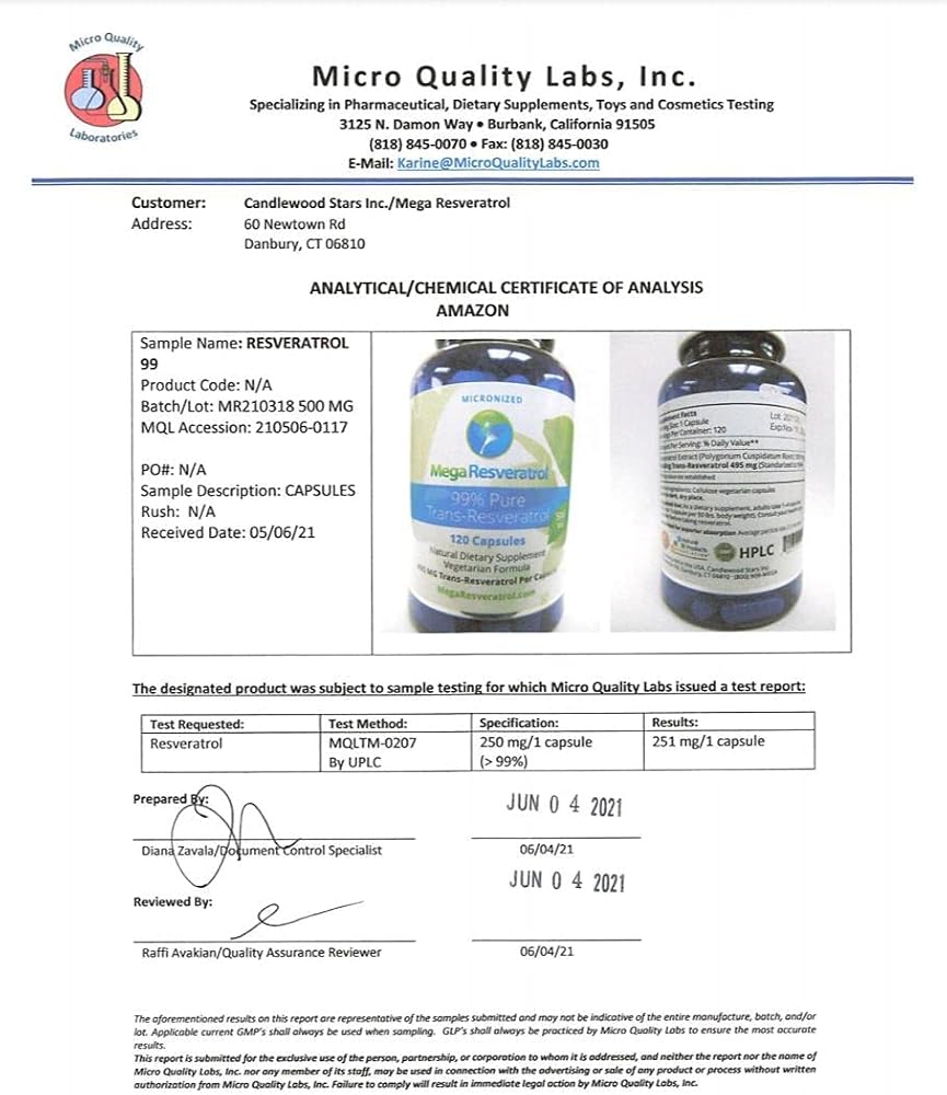 - ✅ درجة صيدلانية، 99% نقي، ريسفيراترول ميكرونيزد. اختيارك من 500 ملغ/الغطاء، 60 كبسولة/الزجاجة