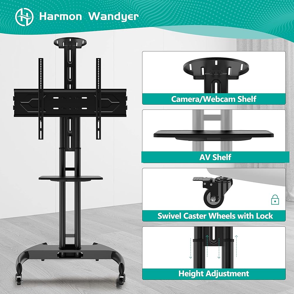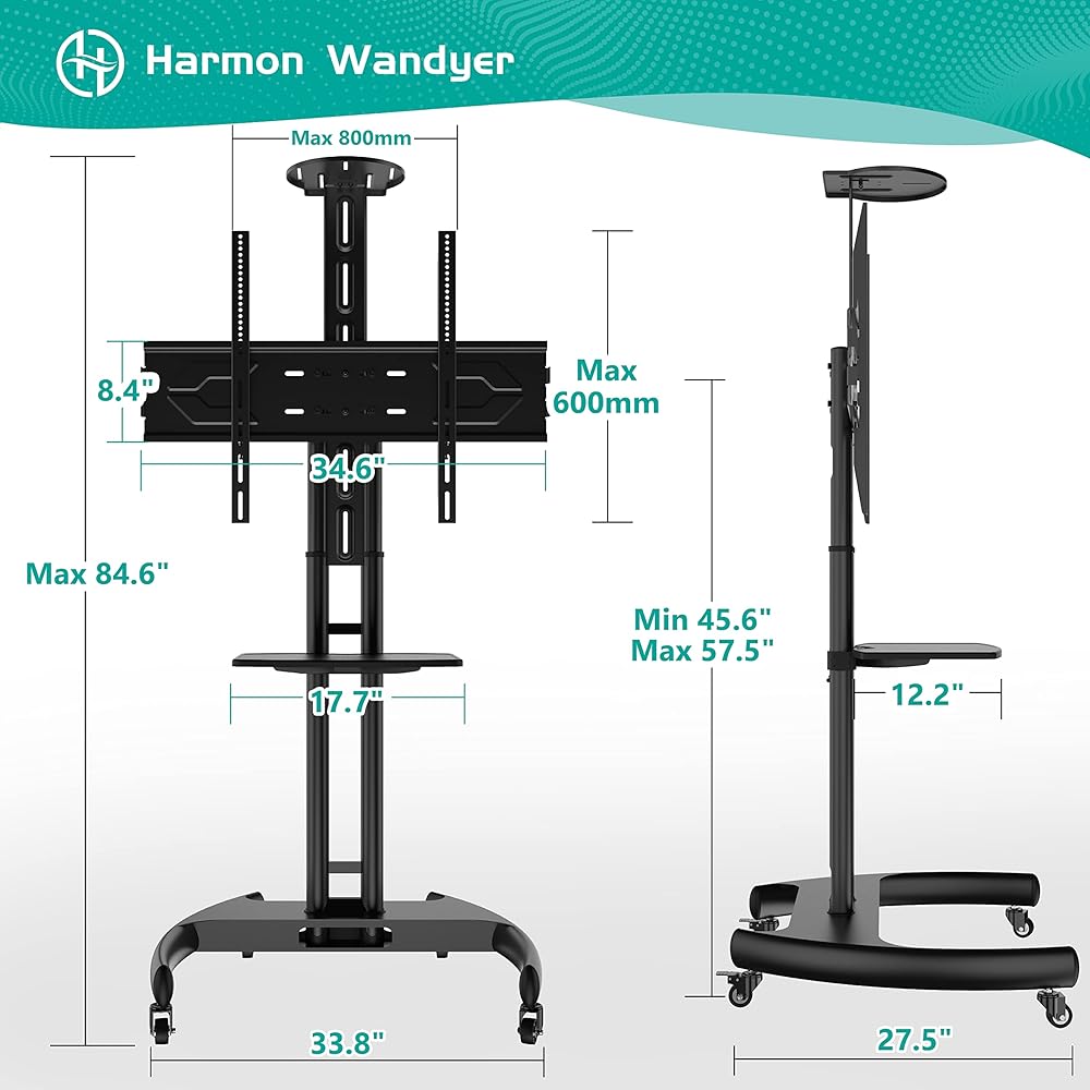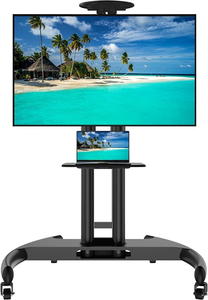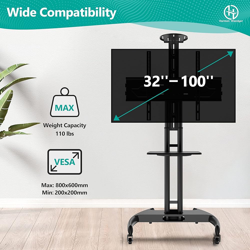 HOME VISION Mobile TV Stand for 65-110 Inch LCD LED Flat/Curved Panel Screen TVs, Rolling TV Cart Holds up to 220LBS, Portable Stand with Shelf Floor Max VESA 1000x600mm Height Adjustable (HV7123)