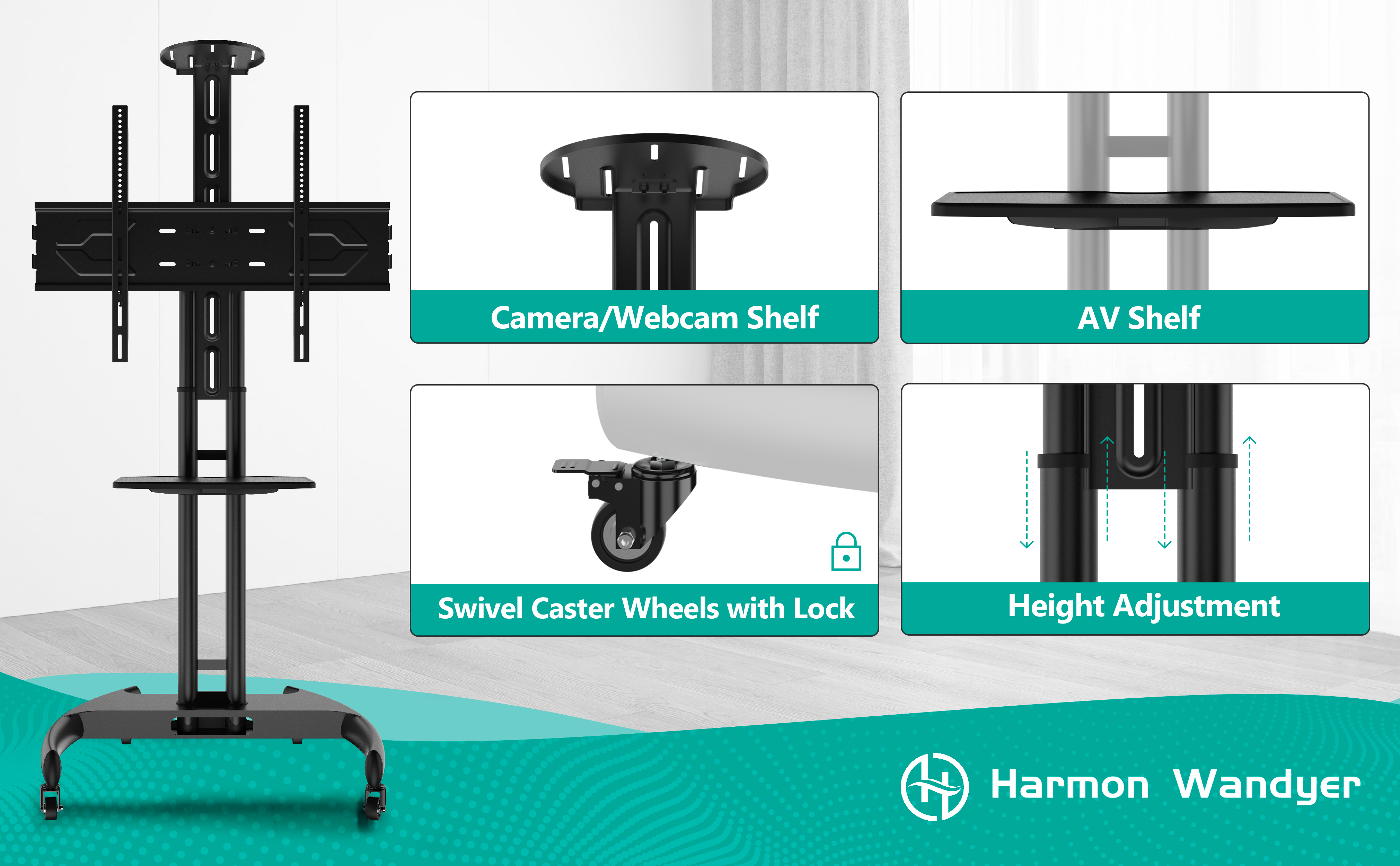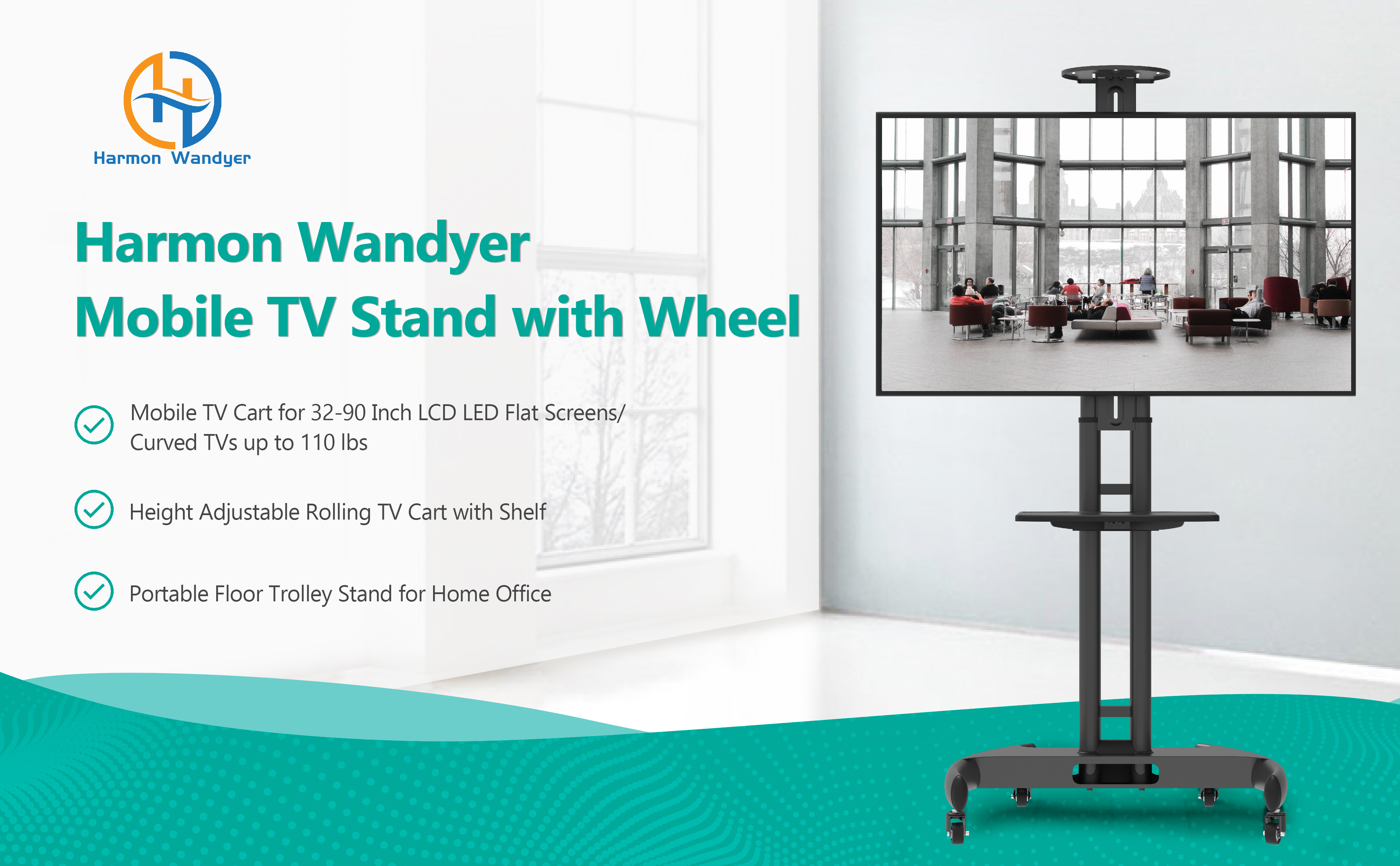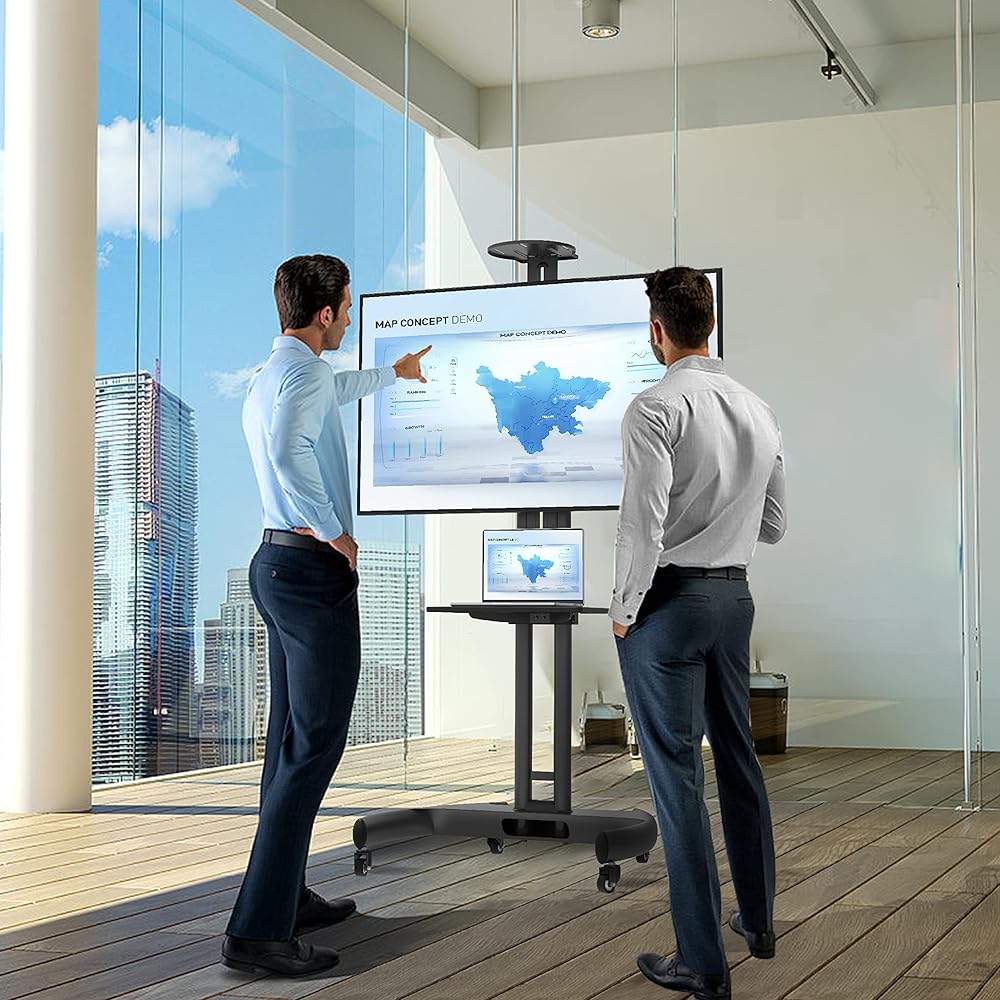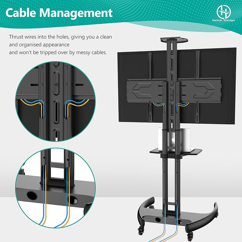 HOME VISION Mobile TV Stand for 65-110 Inch LCD LED Flat/Curved Panel Screen TVs, Rolling TV Cart Holds up to 220LBS, Portable Stand with Shelf Floor Max VESA 1000x600mm Height Adjustable (HV7123)