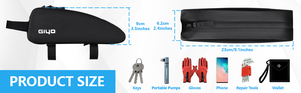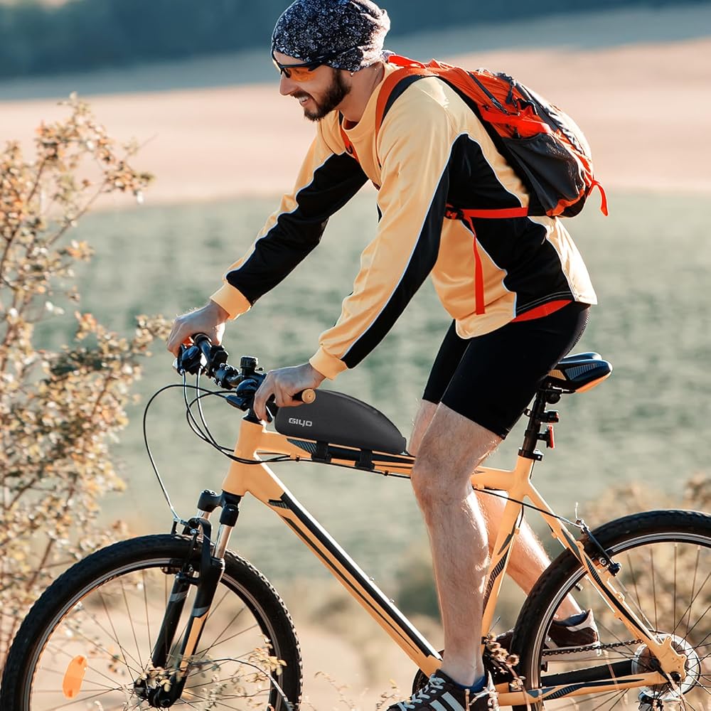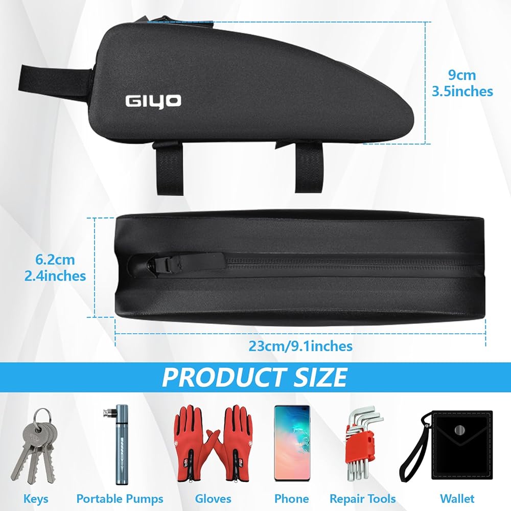 【شكل مثلث ضيق】 مصممة لتناسب الأنبوب العلوي لدراجتك بشكل مثالي، توفر حقيبة الأنبوب العلوي للدراجة هذه سهولة الوصول إلى أغراضك أثناء التنقل. يضيف التصميم الأسود الأنيق لمسة أنيقة إلى دراجتك.
