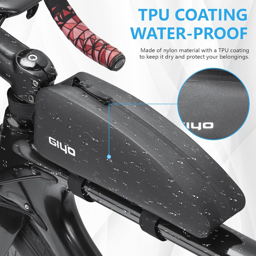 【وظيفة مقاومة للماء】 مصنوعة من مادة النايلون مع طبقة من مادة TPU، توفر الأكياس الأنبوبية العلوية للدراجات الحماية الأساسية لممتلكاتك في الظروف الجوية غير المتوقعة، مما يضمن بقائها جافة.