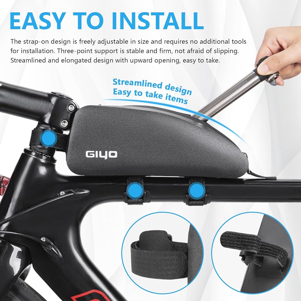【سهلة التركيب】 يسمح لك تصميم الحزام الموجود على الأنبوب العلوي بربط حقيبة أنبوب الدراجة بشكل آمن بإطار دراجتك دون أدوات إضافية. دعم ثلاثي النقاط مستقر وموثوق ولا يخاف من السقوط.