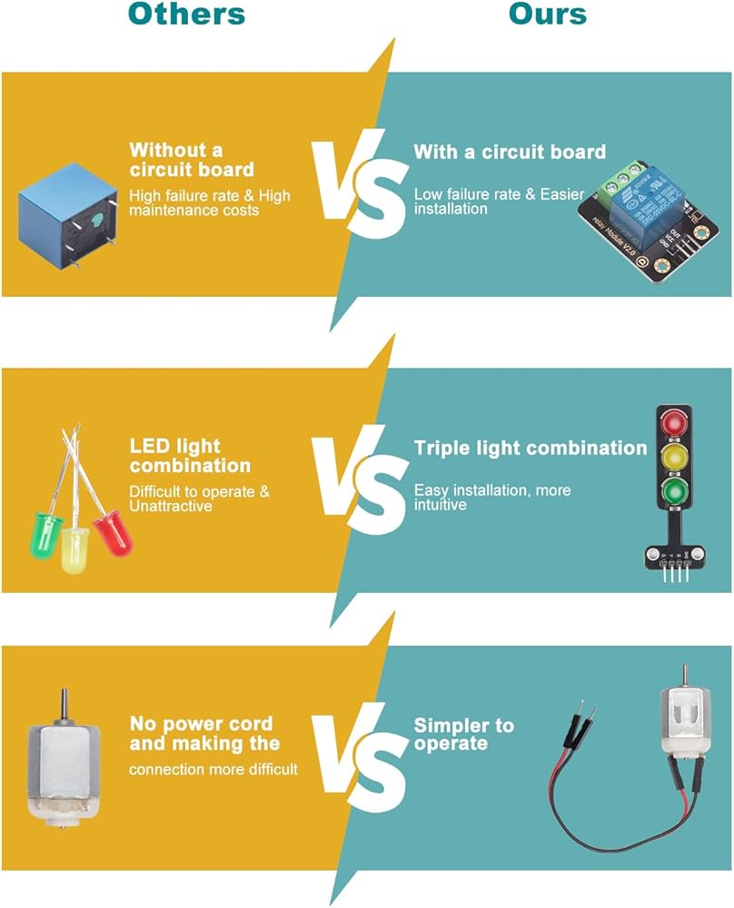 • 【تركيب بدون متاعب】تأتي كل لوحة Arduino مع لوحة دبوسية مصممة خصيصًا لهذا الغرض، مما يبسط عملية التثبيت. ما عليك سوى توصيل الوحدات بالدبابيس المقابلة، دون الحاجة إلى لحام أو موصلات إضافية. توفير الوقت والجهد أثناء البدء بسرعة.