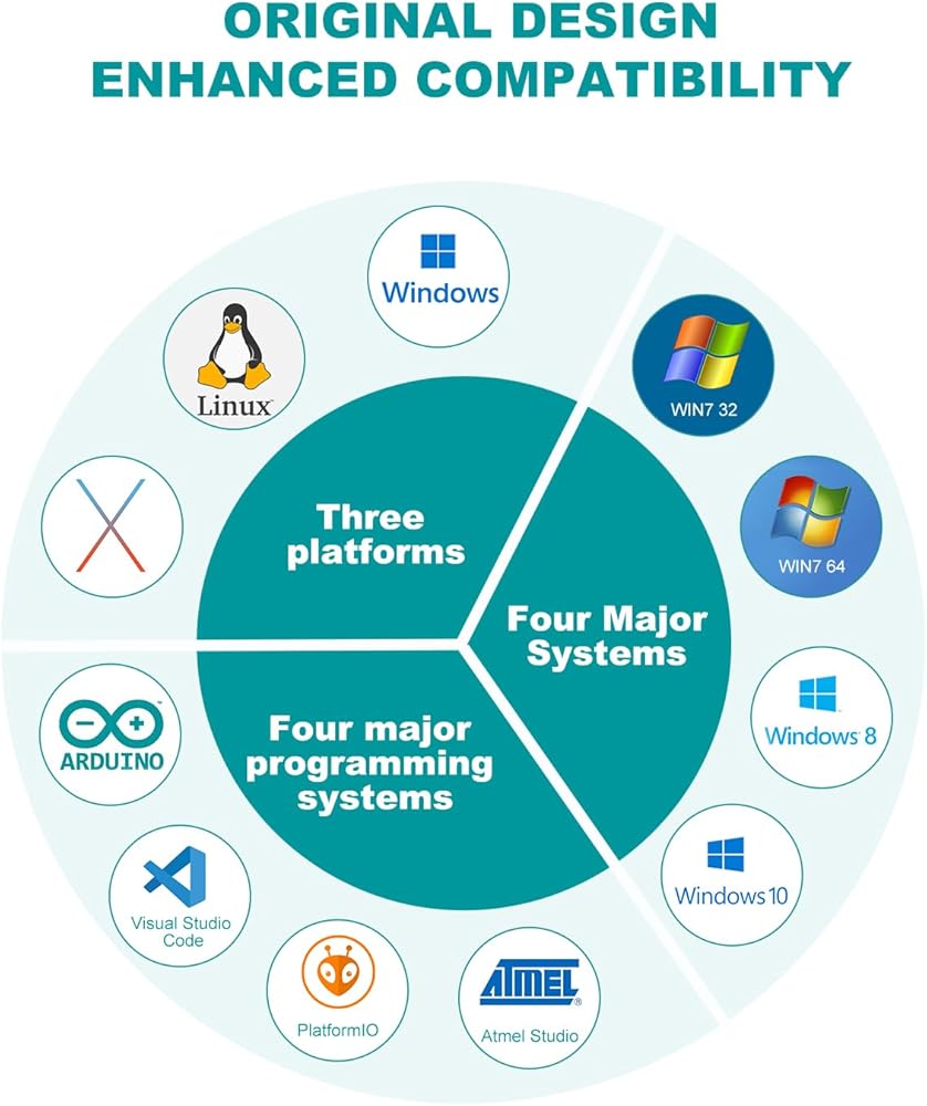 • 【رقاقة أصلية، توافق كامل للنظام】تستخدم المجموعة شرائح أصلية، مما يضمن التوافق السلس مع نظام Arduino بأكمله. اشعر بالثقة في تسخير المجموعة الكاملة من موارد ومكتبات Arduino من أجل التطوير والإبداع.
