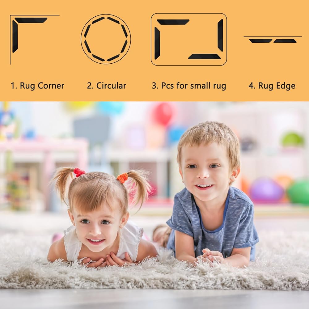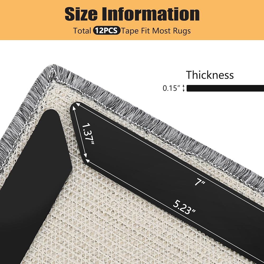 【Dual-sided Gripper】Innovative design allow it seamlessly to stick on rug corners and sides to help keep the corners of your area rugs in place.