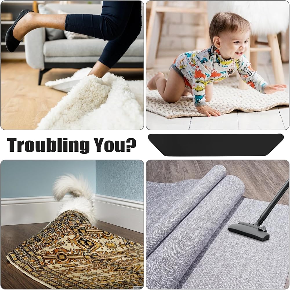 【Anti-Slips】Use our anti-curling rug pads to avoid slips, trips and falls. Placing the pads underneath your carpet will eliminate that slippery aspect and it also keeps your rug from curling or developing wrinkles.