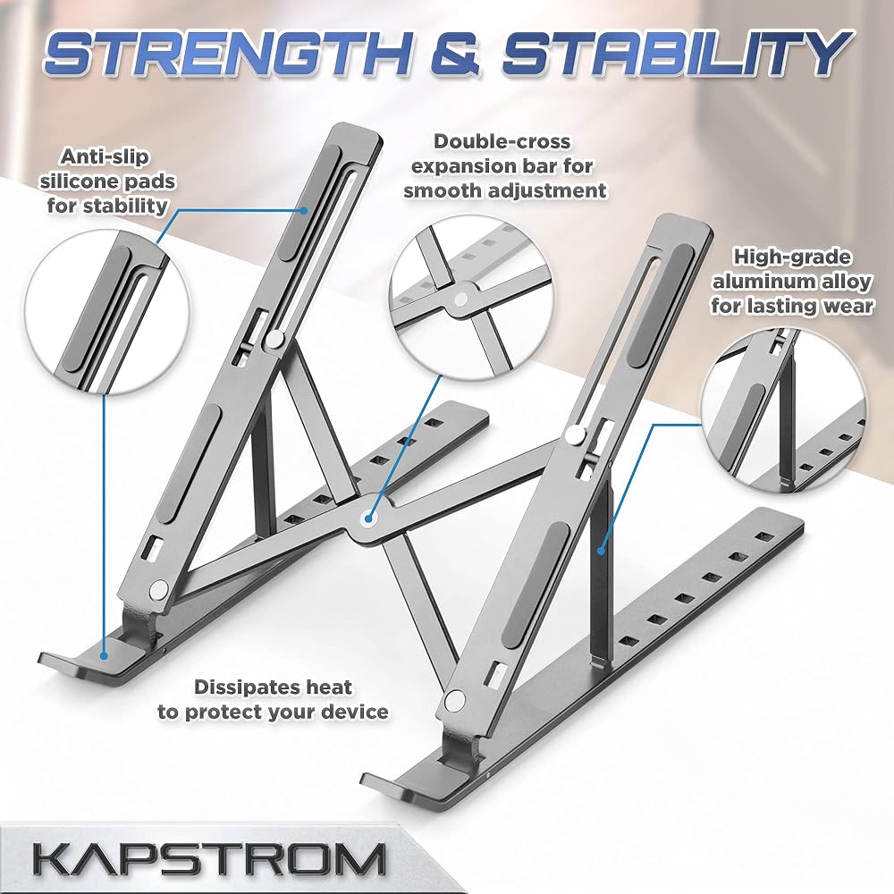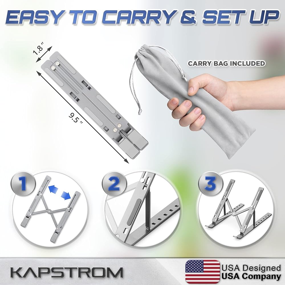 7 مستويات قابلة للتعديل - احصل على جميع الارتفاعات التي تحتاجها مع سبعة إعدادات مختلفة لراحتك لتقليل الضغط والضغط على الظهر والكتفين والذراعين والرقبة؛ تمنع وسادات السيليكون المضادة للانزلاق الخدش والانزلاق على الأسطح؛ يحمل ما يصل إلى 88 رطلا