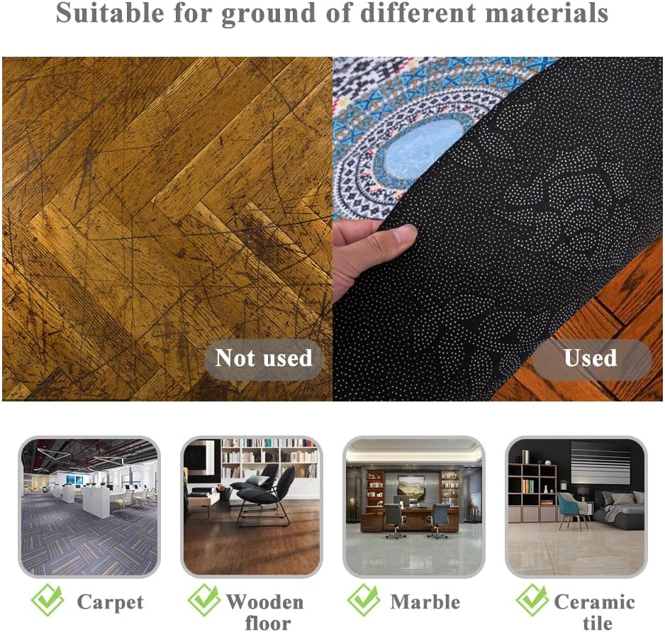 【Anti-Slip & Durable Chair Mat】The slip resistant rubber bottom of the office chair mat makes the floor mat firmly stay in place and provide stability and safety protection that makes the chair doesn't skid around. Protect mat for floor and carpet, stop any noise being heard. This floor protector mat is a ideal choice for home office daily use, will last for years to come.