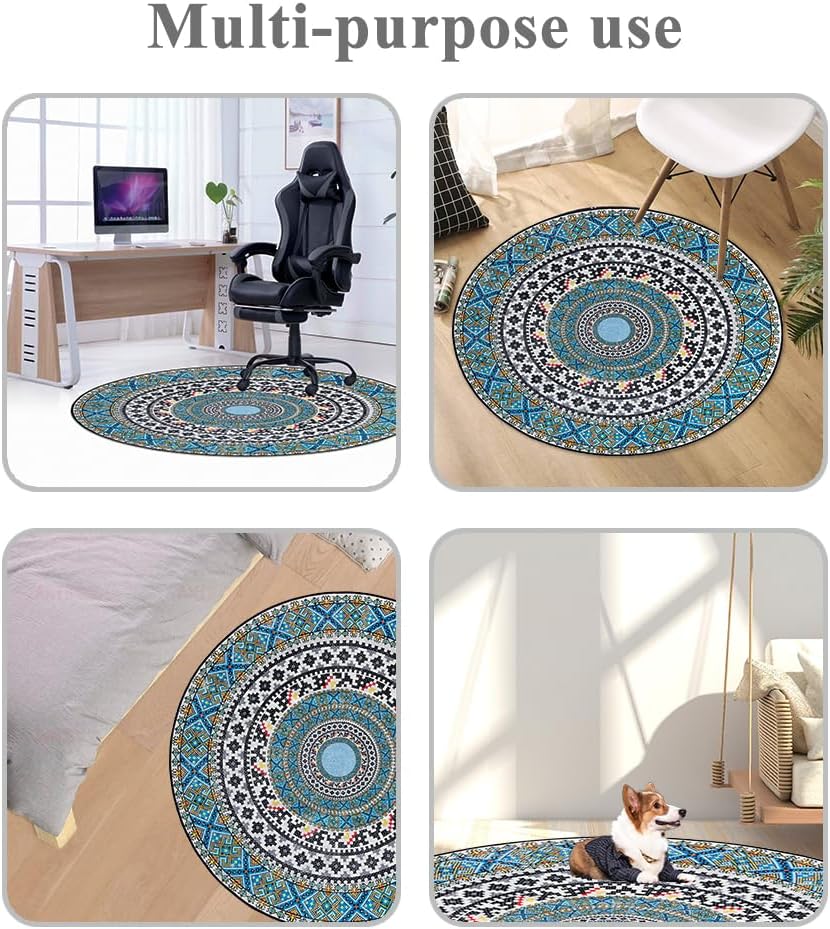 【Fits Any Space】47 x 47 in. 0.2 inch thickness makes the chair move more quietly. Perfect size fits right between your desk legs and covers a large area for your chair. The outstanding patterns design make it easily blend in any space, especially for your game room. We offer 30-day free return without giving a reason and 1 years warranty. Note: It comes folded up in a package. You can put some weight on it or iron it to flatten it out more quickly.