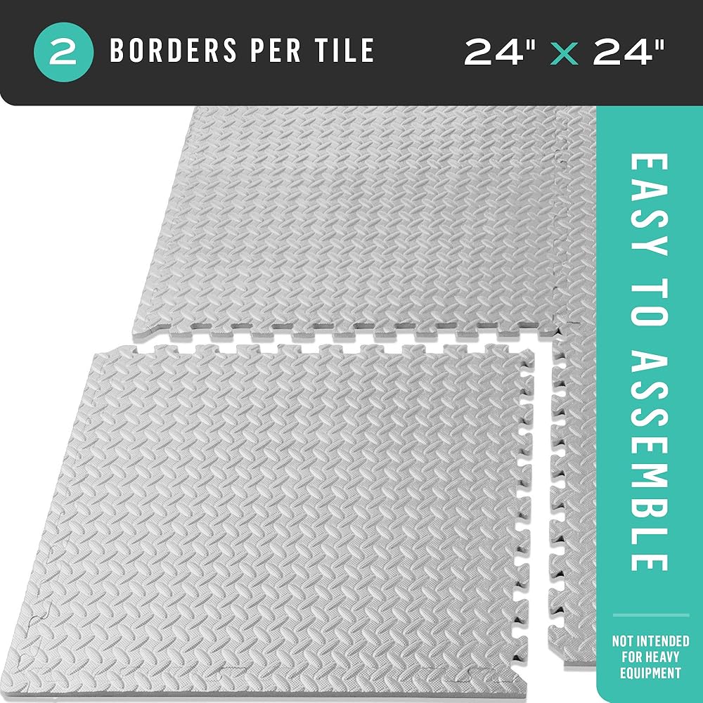 Easy To Install - Setting up your workout area has never been easier. Each foam tile comes with two detachable border pieces and easy-to-trim edge pieces, allowing for a customizable fit. The tiles fit together like a puzzle, and you can assemble them in just minutes over any hardwood, vinyl, tile, or flat indoor surface. Enjoy the convenience of a hassle-free installation process.