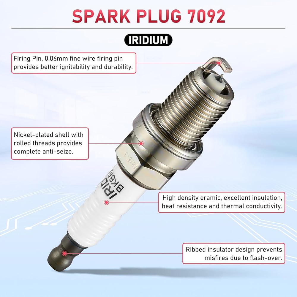 【معيار OE】تتوافق شمعات الإشعال الخاصة بنا مع معايير OE من حيث الشكل والملاءمة والوظيفة أو تتجاوزها. مصنوعة من مادة مقاومة لدرجات الحرارة العالية، ويمكنها تحمل الضغط الحراري وهي متينة. تركيب سريع وسهل، أداء ممتاز وموثوق. تُعد مجموعات ملفات الإشعال الممتازة الخاصة بنا بديلاً سريعًا وسهلاً ومباشرًا لملفات المحرك الخاصة بك، مما يمنح سيارتك الشرارة التي تحتاجها! رقم OE قابل للاستبدال: شمعات إشعال إيريديوم 7092 استبدل قابس الإشعال BKR6EGP.